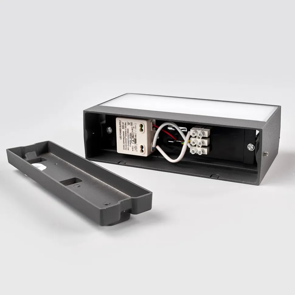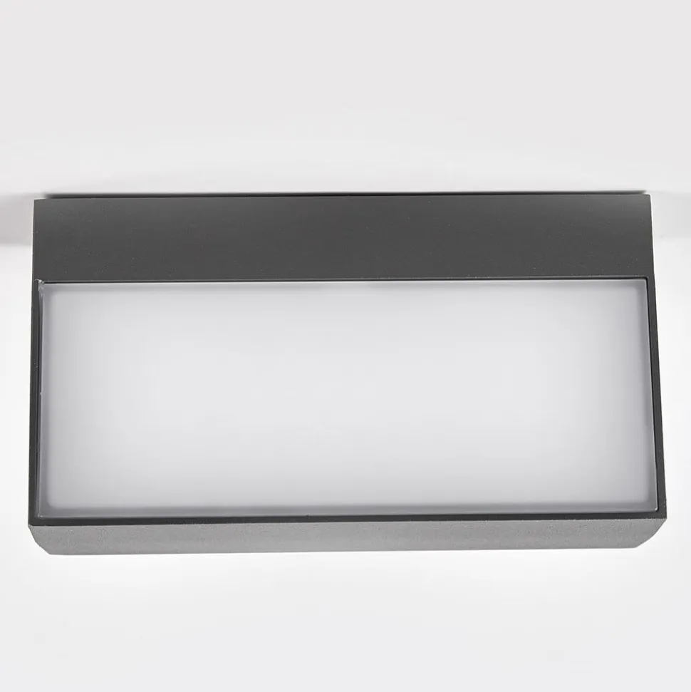 Lissi grafitgrå udendørs LED-væglampe med opadgående og nedadgående lysudstråling Lissi kan pryde enhver udendørs facade, uanset om den er moderne eller mere klassisk. Det skyldes, at dens kantede form er så universelt anvendelig, og at rammens grafitgrå overflade også matcher mange stilarter. Inde i lampekroppen, som er dækket af polykarbonatskærme, sidder de energibesparende LED’er, hvis varmhvide lys skinner ud i omgivelserne.