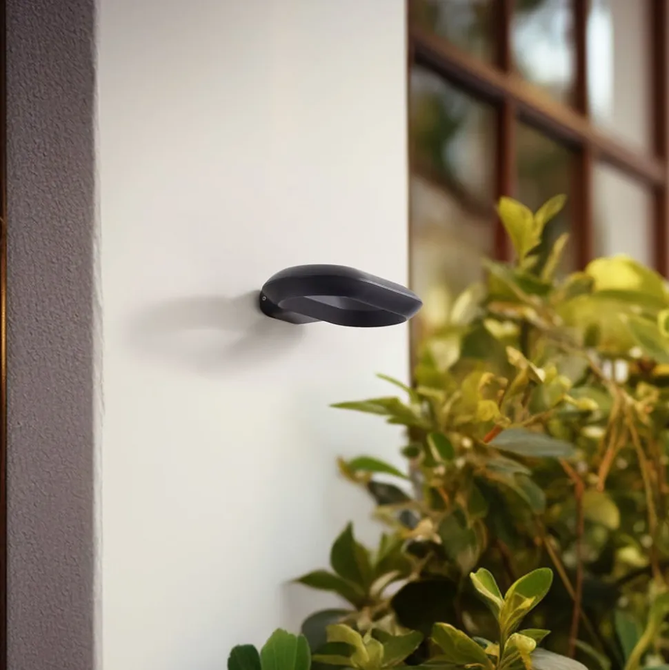LOOP udendørs LED-væglampe forener funktionalitet med moderne design og er specielt udviklet til udendørs brug. Med sin kapslingsgrad IP44 er den optimalt beskyttet mod stænkvand og dermed ideel til belysning af terrasser og altaner. Den integrerede LED-lyskilde sikrer energibesparende belysning og understreger dette belysningselements moderne udtryk. Det sorte metalhus passer perfekt ind i en lang række stilarter og er en pålidelig lyskilde til udendørs brug. LOOP er et glimrende eksempel på kombinationen af æstetik og effektivitet i moderne udendørsbelysning.