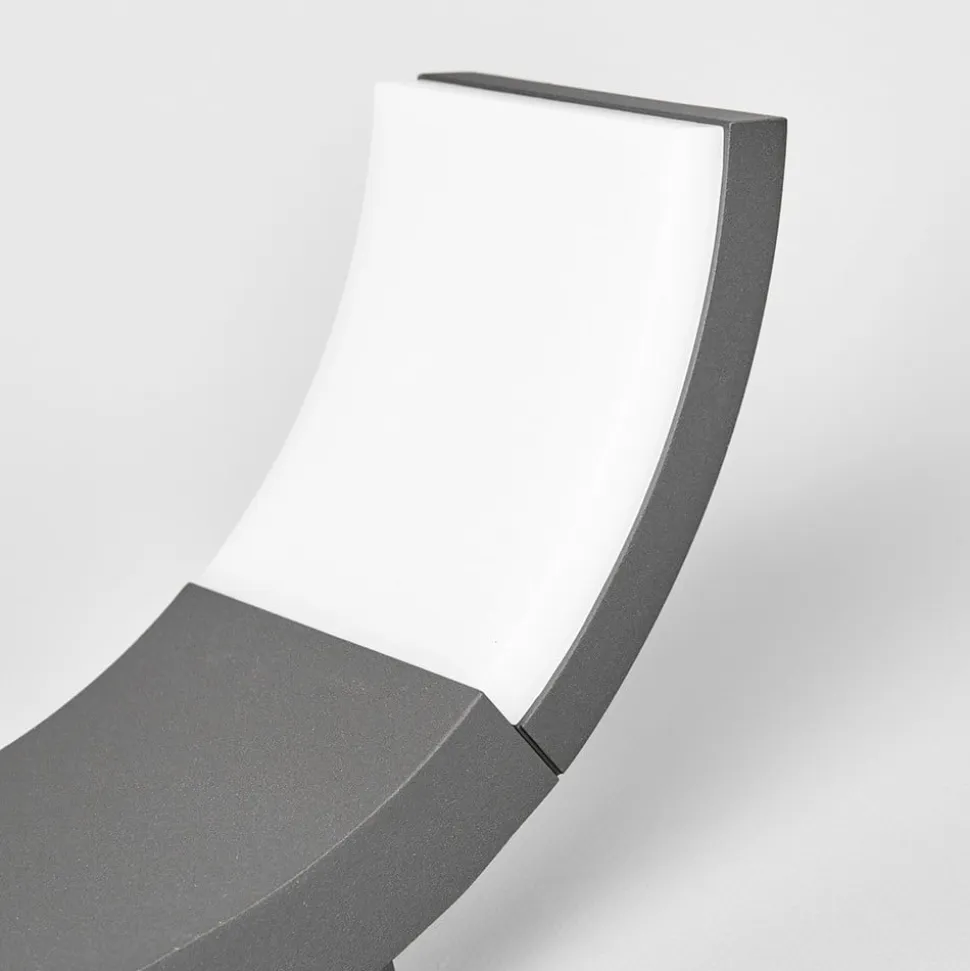 Timm – udendørs væglampe med LED Timm udendørs væglampe er en smuk lyskilde til udendørsarealer, og det er ikke kun, fordi den er udstyret med LED. Lampekroppen er let skråtstillet og lavet af aluminium med en grafitgråtonet overflade. LED-pærerne er placeret i den øverste del og er beskyttet af et hvidt dæksel, som giver en blødere lysfordeling. Timm kan bruges som udendørs væglampe på husfacader, men kan også nemt monteres på andre typer murværk.