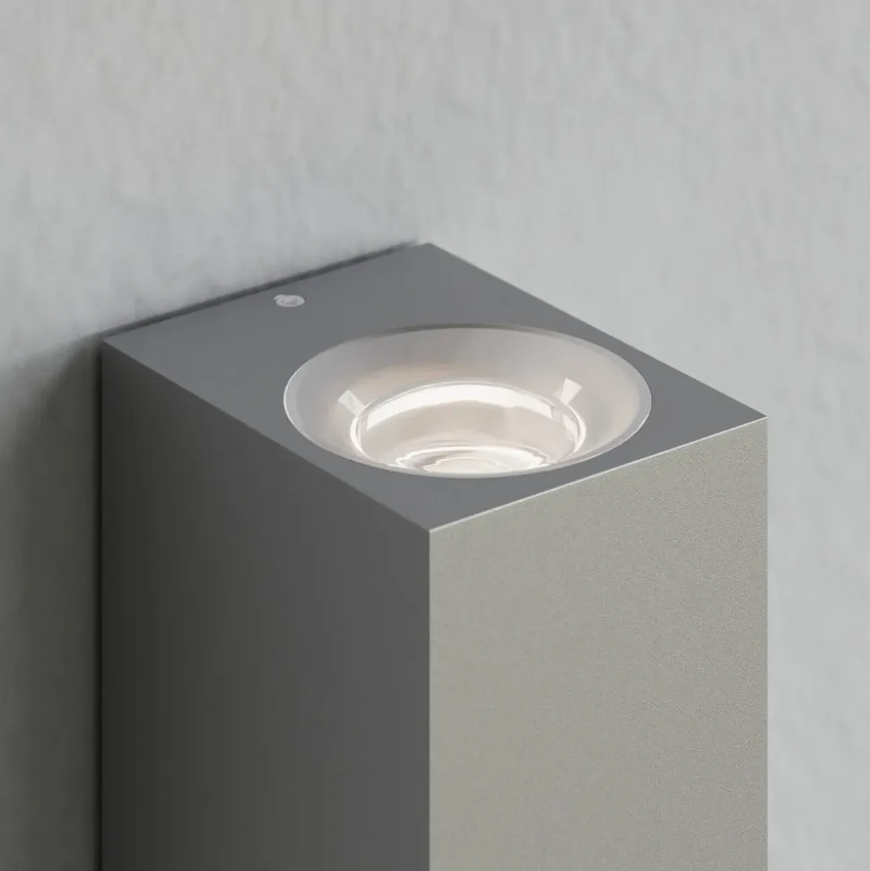 Dobbeltsidet udendørs LED-væglampe Tavi Den udendørs væglampe Tavi udsender ikke kun lys nedad, men også opad – i begge tilfælde i en ret bred vinkel på omkring 90°. Det er en lyseffekt, der er let at genkende på afstand, og som bestemt ikke er en ulempe i udendørsområder, men snarere forbedrer husets samlede atmosfære. De integrerede LED’er, som er kendetegnet ved høj energieffektivitet, er et Bridgelux-mærkeprodukt, der skinner i en varmhvid lysfarve.