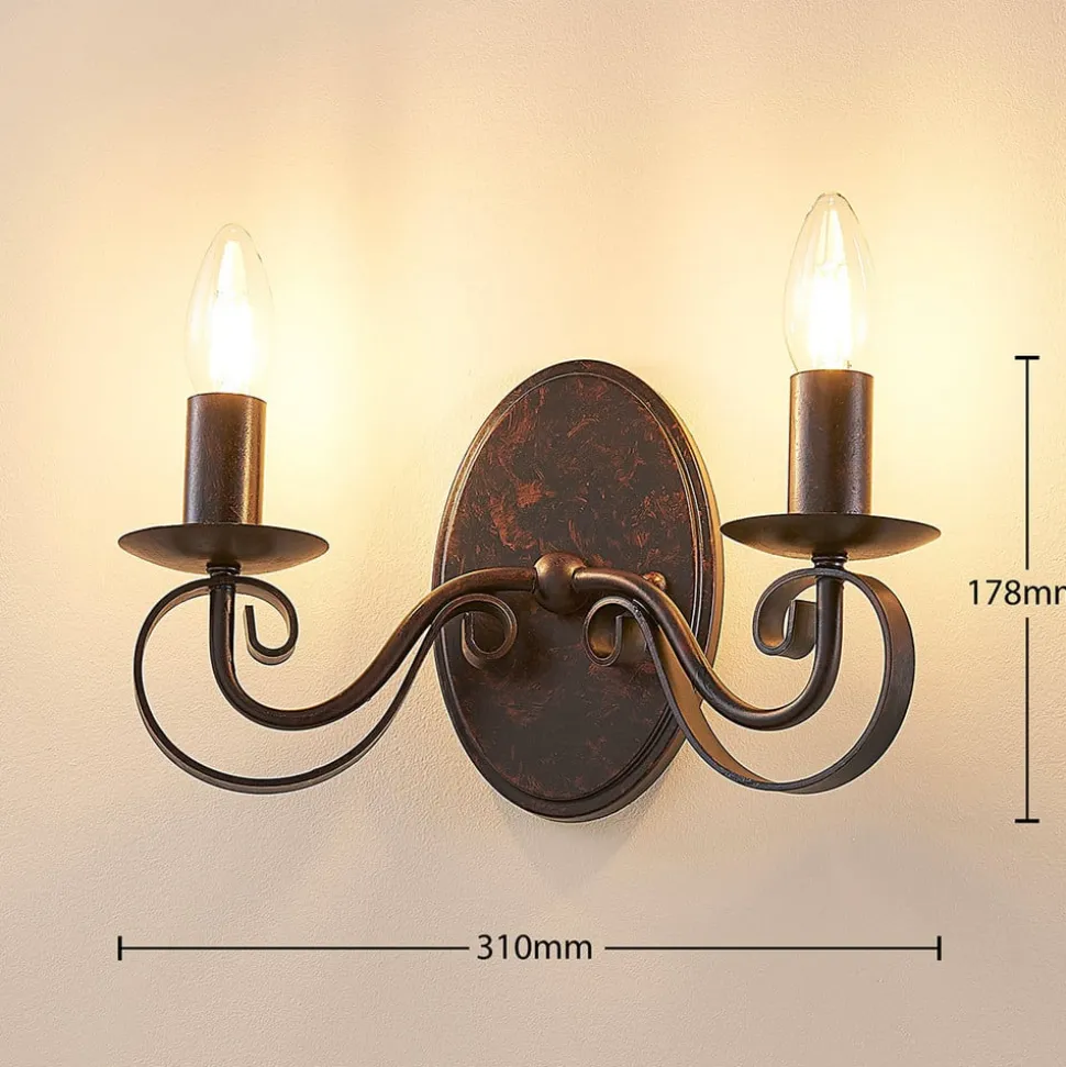 Lucande væglampe Caleb, 2 lyskilder, rustfarvet, metal, E14