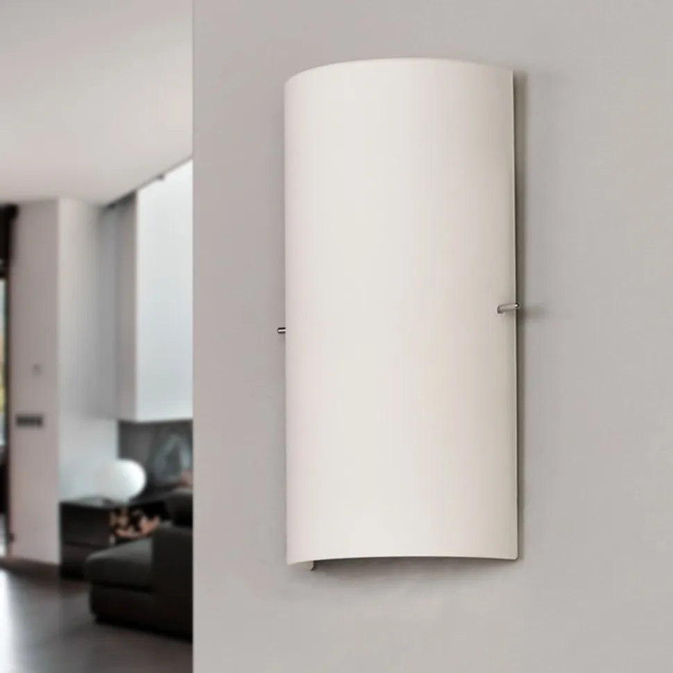 Universal glasvæglampe Sidra med halvcirkelformet skærm Når man ser Sidra forfra, består væglampen blot af en meget diskret, hvid glasskærm. Det betyder også, at væglampen faktisk passer ind i alle omgivelser, fordi designet ikke er centreret om en bestemt stil, men udtrykker noget utroligt tidløst. Man kan bare koncentrere sig om det smukke lys, som Sidra er i stand til at frembringe. Takket være den hvide glasskærm er den fantastisk hyggelig og indbyder til afslapning og ophold. Væglampen er ikke kun velegnet som stemningsfuld ekstra belysning, men er også perfekt som dekorativ accentbelysning.
