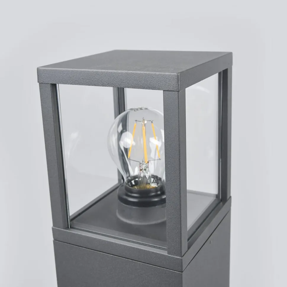 Klemens kantet pullert med glasindsats og mørkegrå overflade Klemens er en udendørslampe, der er perfekt til at oplyse havestier og indkørsler. Takket være glasindsatserne kan lyset skinne uhindret udad og uden at reducere lysstyrken. Det betyder, at man altid har lys nok til at føle sig tryg og kunne bevæge sig frit rundt, selv efter mørkets frembrud. Lampekroppen har en kantet form og en grafitgrå overflade, der harmonerer godt med det moderne overordnede design.