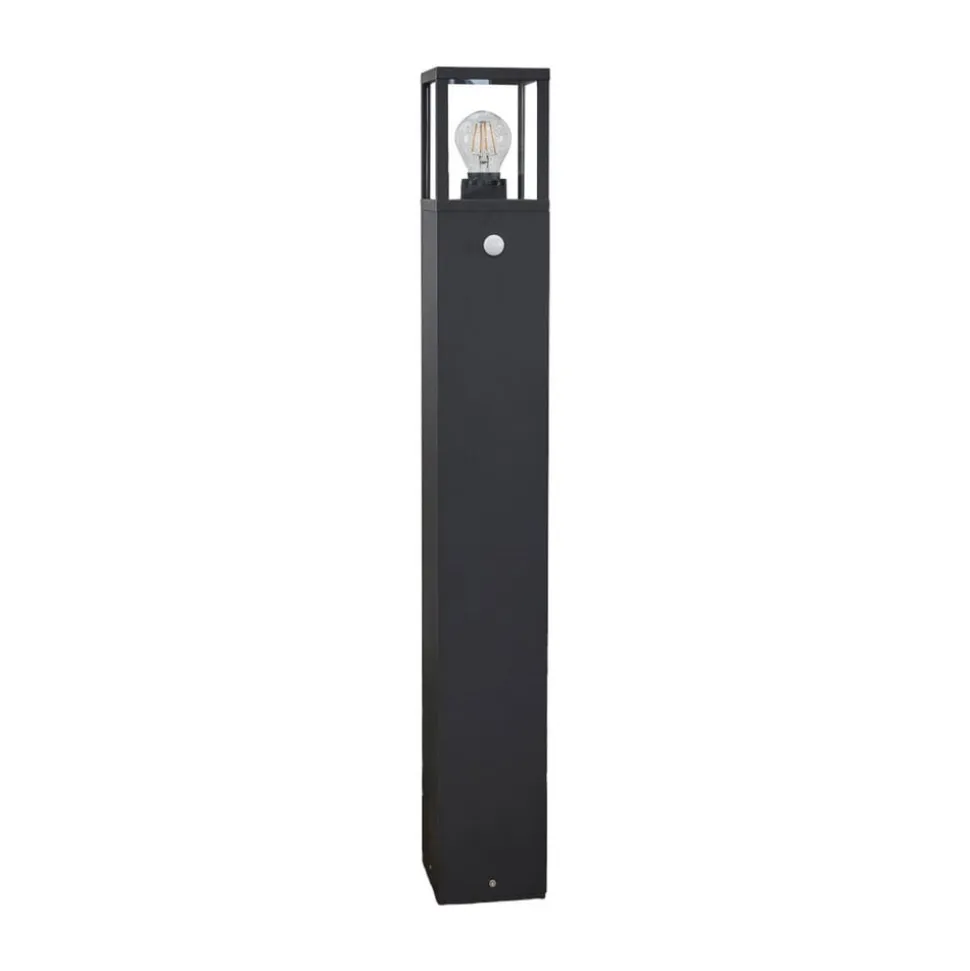 Kantet Klemens vejlampe med grafitgråt aluminiumshus og integreret bevægelsessensor Klemens kan bruges overalt udendørs, hvor der er behov for en moderne effekt, da vejlampen har et meget moderne udseende med sit lineære design. Størstedelen af armaturet er lavet af trykstøbt aluminium, og kun i den øverste del er der indsat klart glas. De sikrer, at lyset fra den anvendte lampe kan trænge uhindret udad. Der er også en integreret sensor, som reagerer på bevægelser i omgivelserne og tænder vejlampen, når det er nødvendigt. Sensordata: – 180° registreringsvinkel – 8 m rækkevidde – Justerbar lysvarighed: 5s – 30 s – 1 min – 3 min – 5 min – 8 min