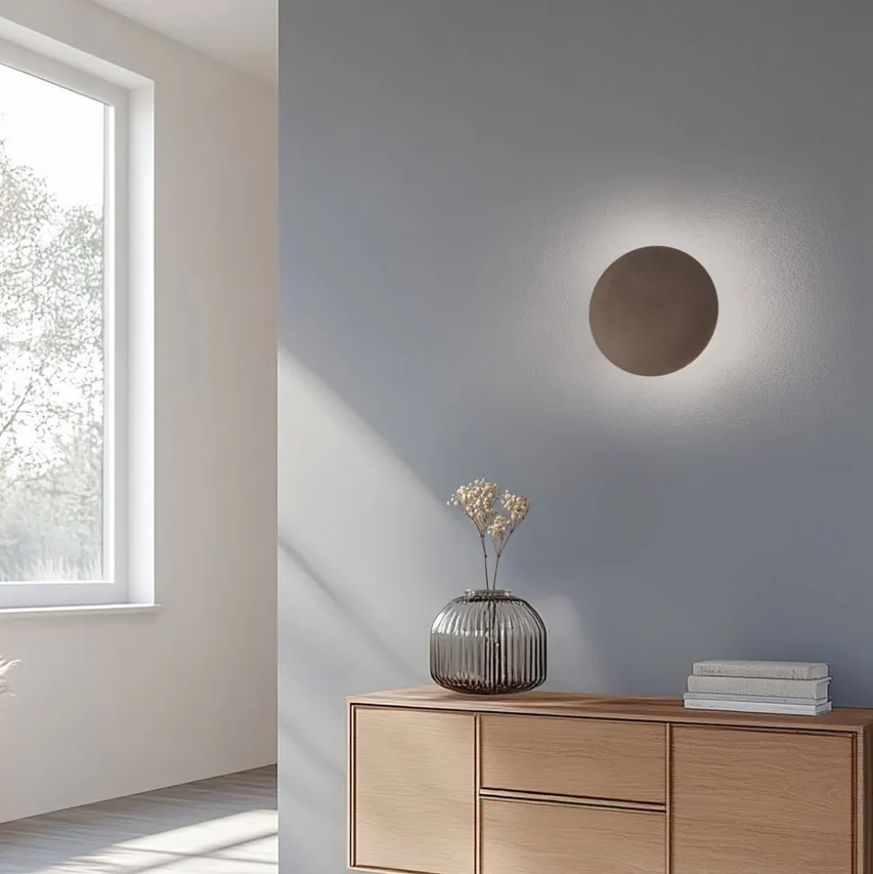 Luna væglampe, brun, indirekte lys, Ø 30 cm, stål