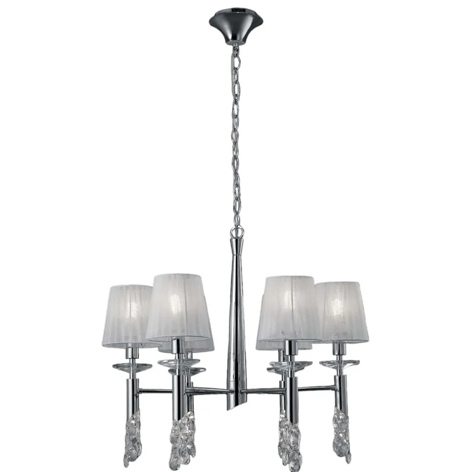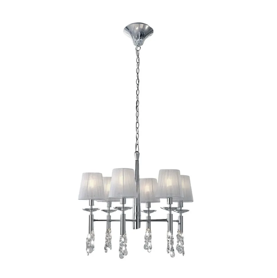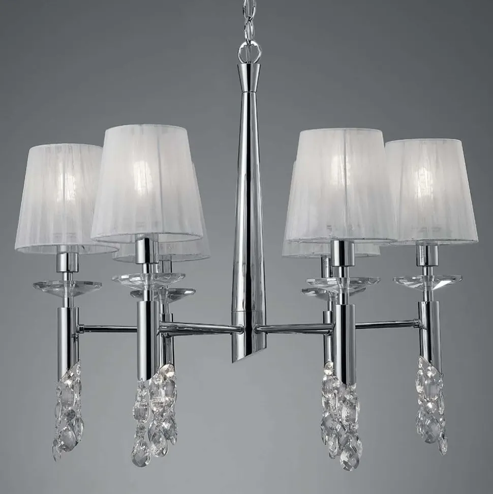 Designerlysekronen Lilja udstråler festlig pragt i et moderne boligmiljø Lysekroner er ofte udformet i en stil, der minder om tidligere tiders pragt og har til formål at bringe noget af den ind i nutiden. Det er meget anderledes med lysekronen Lilja af designeren José Ignacio Ballester. Takket være de delikate silkeskærme med deres skinnende lys og det glitrende krystalophæng mangler den intet i eksklusivitet og passer perfekt ind i denne moderne æra med sit komplette look. Lilja-lysekronen harmonerer med mange moderne indretningsstile i private hjem, restauranter og hoteller.