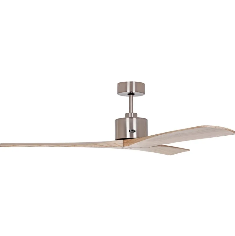 Macau loftventilator, krom, lyst naturtræ