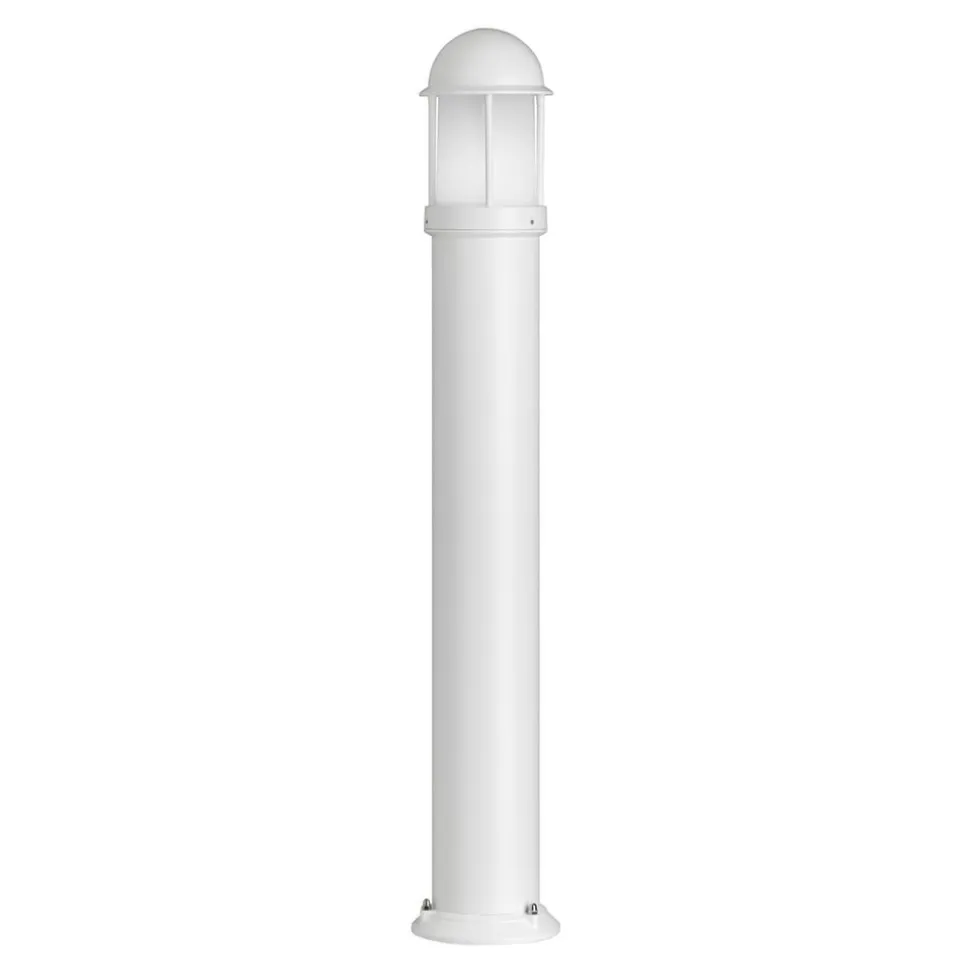Afrundet Marco vejlampe af aluminium Den stolpeformede Marco vejlampe med afrundet hoved har et tidløst moderne og lidt maritimt look. Den opalhvide polykarbonatskærm lader lyset slippe ud i alle retninger, mens hovedet sikrer blændfri belysning. Basen og hoveddækslet på den kapslingsgraderede vejlampe er lavet af trykstøbt aluminium og er absolut holdbare.