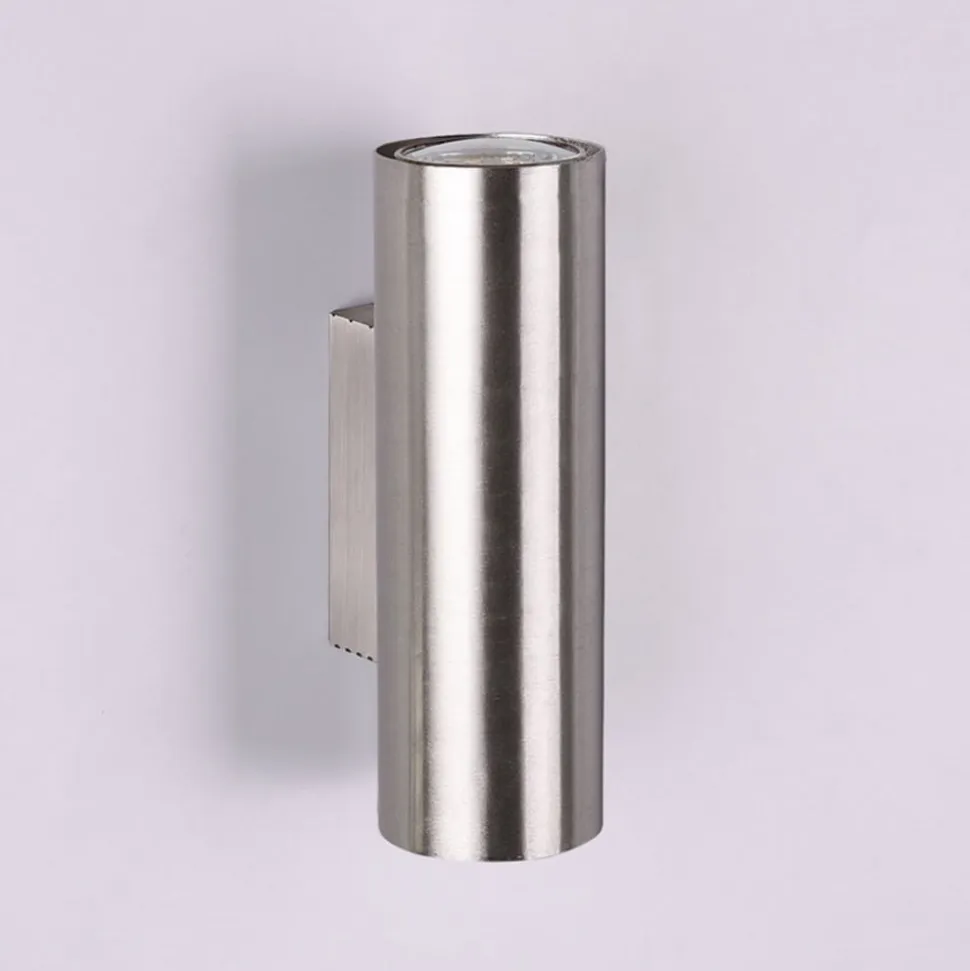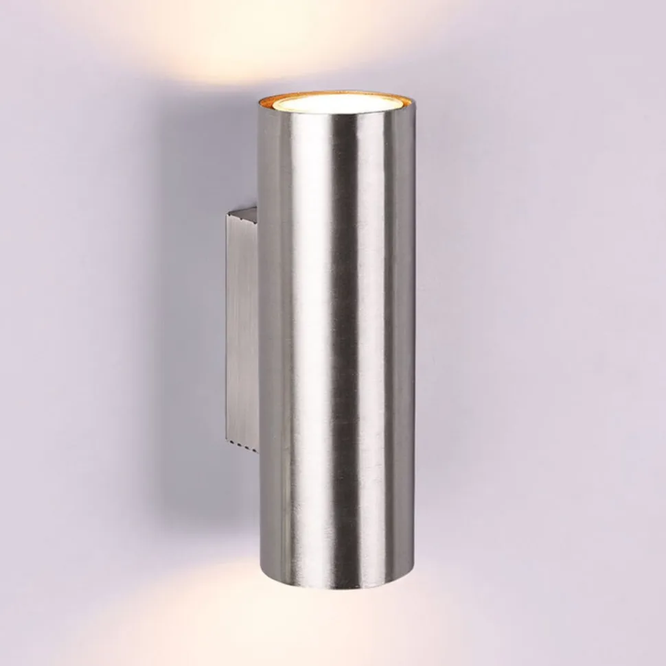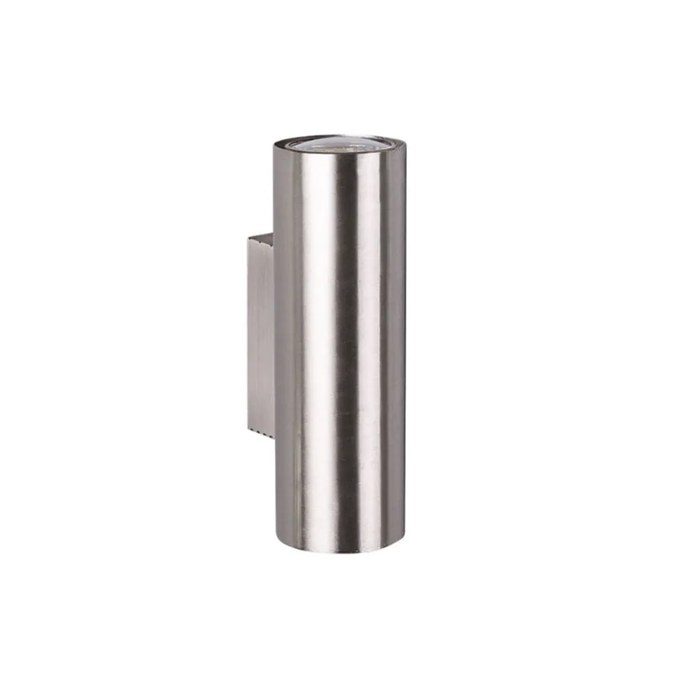 Mat nikkelfarvet Marley væglampe med dobbeltsidet lysudstråling Marley væglampen sætter flotte accenter, især i gange, men også i moderne stuer eller soveværelser, takket være sit design i form af en cylinder og sin matte nikkelfinish på den ene side og den dobbeltsidede lysudstråling på den anden side. Armaturet ser særligt attraktivt ud, når flere af dem er monteret på væggen i lange korridorer. Leveres uden pære – bestilles separat.