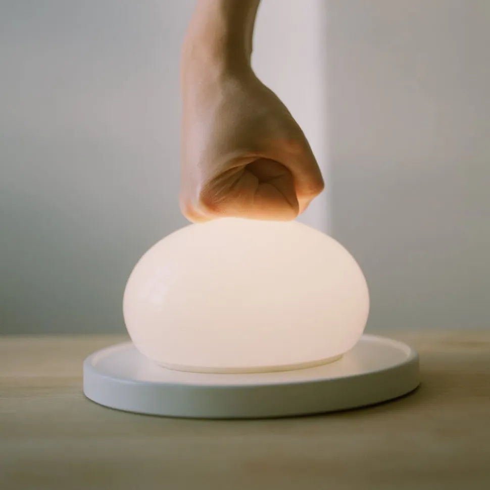 Med Bolita har Florian Kallus og Sebastian Schneider fra Studio kaschkasch realiseret deres ønske om at skabe et armatur i vores meget tekniske verden, der kan dæmpes mekanisk. Det er lykkedes dem på glimrende vis med designet af Bolita LED-bordlampen. Bolita sætter berøringssansen i fokus igen. På den runde stålbase sidder et lysende organ af blæst opalglas, hvori der er monteret varm hvide LED’er. Deres lys kan dæmpes ved blot at flytte glasset med hånden.
