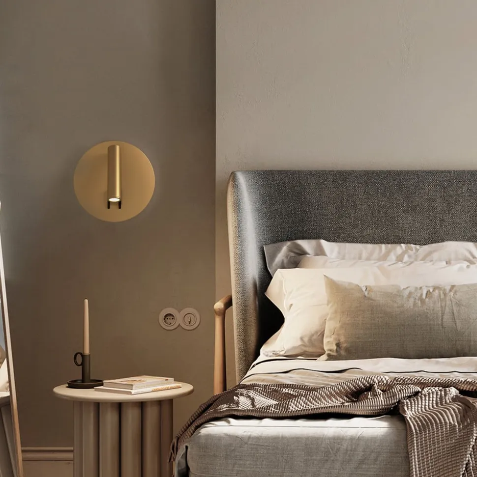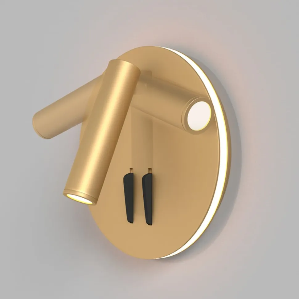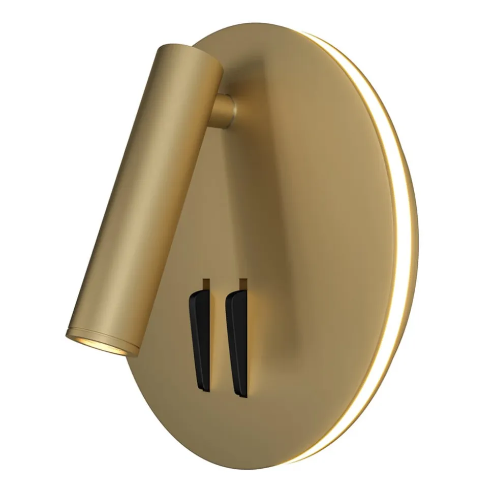 Elegance i guld: iOS 176 LED-væglampe med to lyskilder og to afbrydere iOS 176 LED-væglampen kombinerer stilfuldt design med funktionel belysning og skaber en atmosfære, der forvandler rum. Med sin guldfarvede overflade og runde form passer den perfekt ind i moderne indretningskoncepter, især i soveværelset. Den integrerede LED-lyskilde giver ikke kun en behagelig belysning, men er også kendetegnet ved sin energieffektivitet. Ios 176 har to lyskilder – et omgivende lys omkring vægbeslaget og et målrettet spotlys. De to lyskilder kan skiftes separat ved hjælp af de to kontakter.