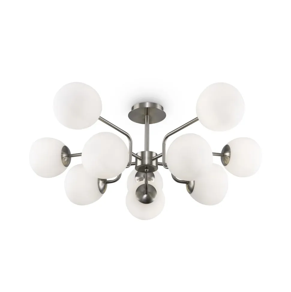 Maytoni loftlampe Erich, nikkelfarvet, glas/metal 10 lyskilder.