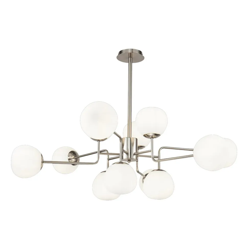 Maytoni lysekrone Erich, nikkelfarvet glas/metal 12 lyskilder.
