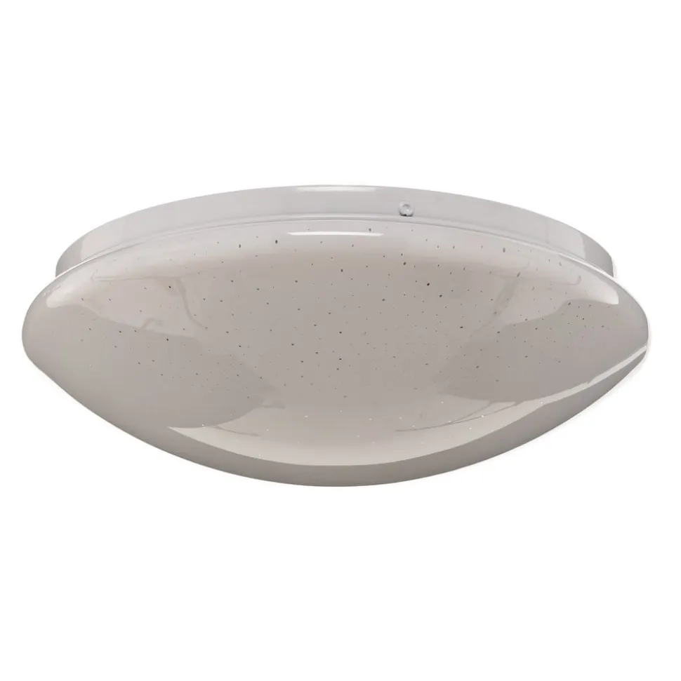 Moon LED-loftslampe med stjernedekor og RGB-tilstand Moon LED-loftslampen skaber en smuk atmosfære med sin stjernedekor, varmhvide lysfarve og RGB-tilstand i tre farver: rød, grøn og blå. Lampen er lavet af metal og plast og har en rund form. Lyset og dæmpningen af lysintensiteten kan nemt justeres med den medfølgende fjernbetjening. Du kan selv bestemme, om du vil have rummet til at skinne klart eller bare flimre hyggeligt – med natlysfunktion