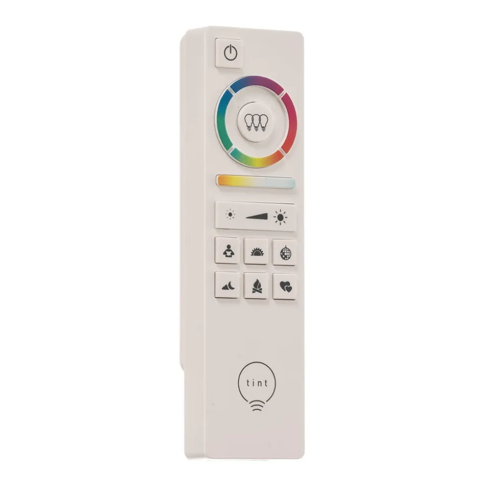 – kan styres via en passende tint-fjernbetjening (medfølger, inkl. 2 x AAA-batterier)