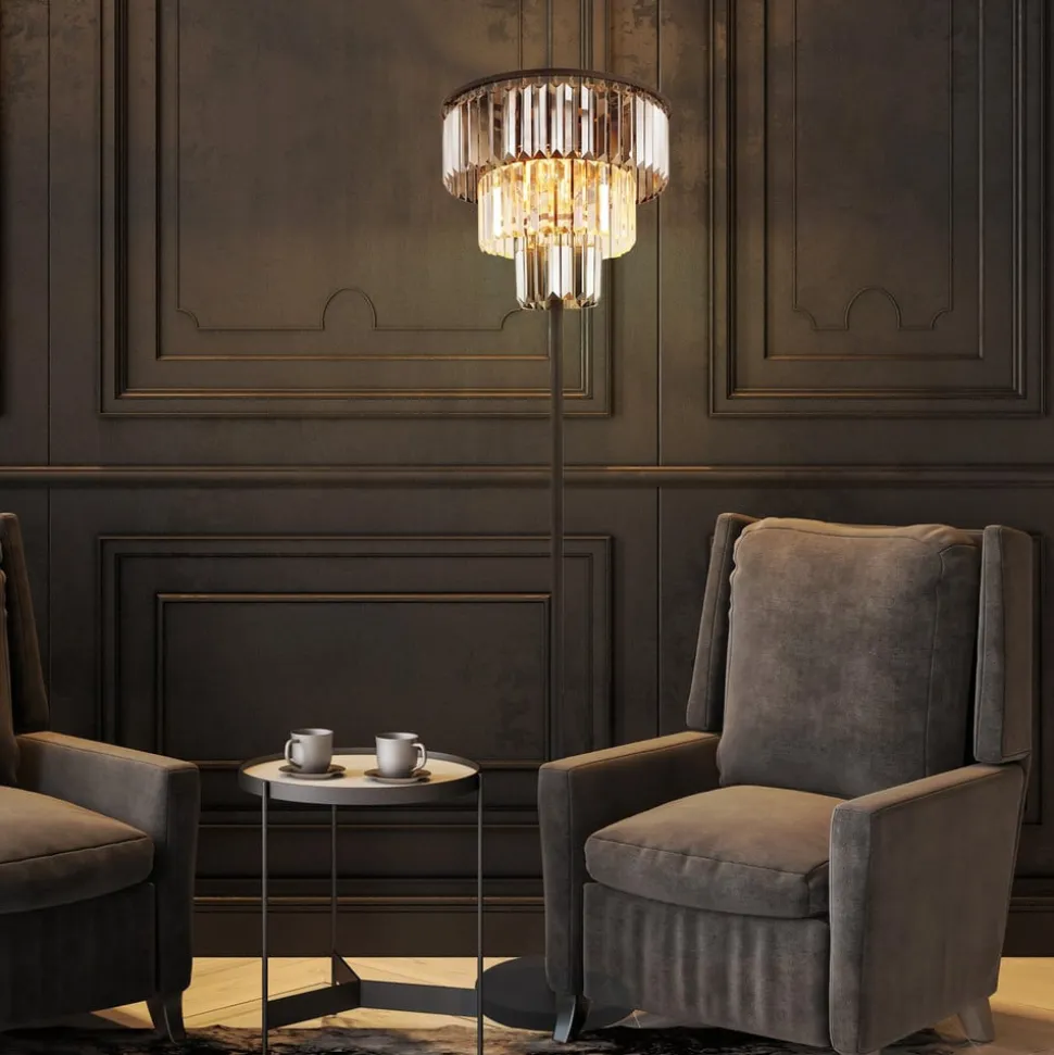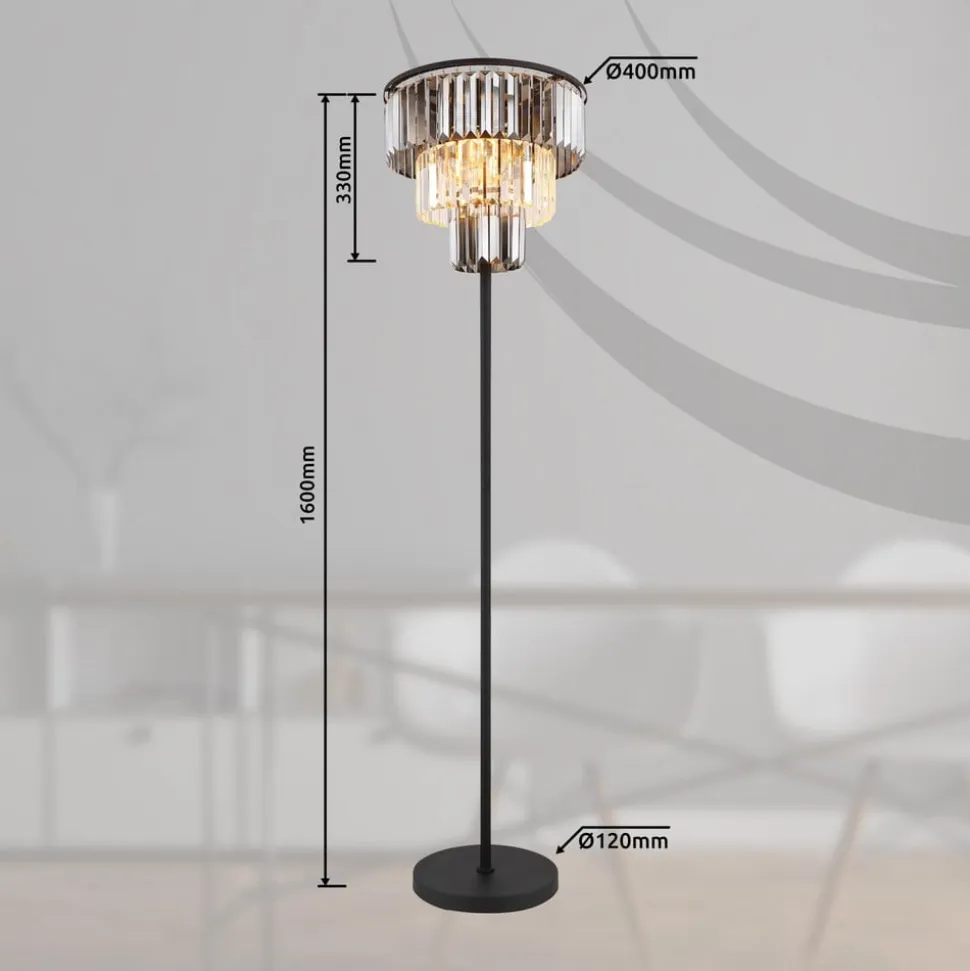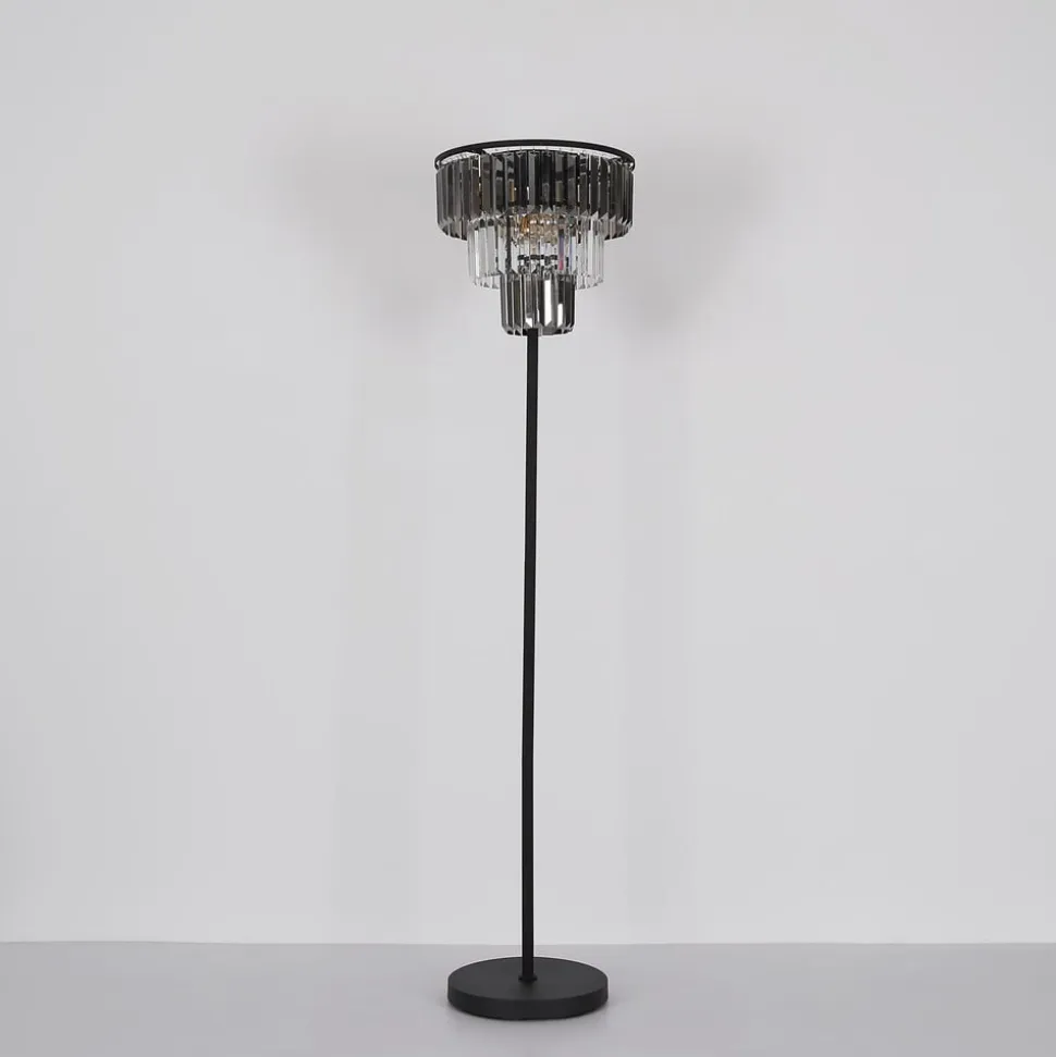 Naxis gulvlampe, sort/røggrå, højde 160 cm, krystal