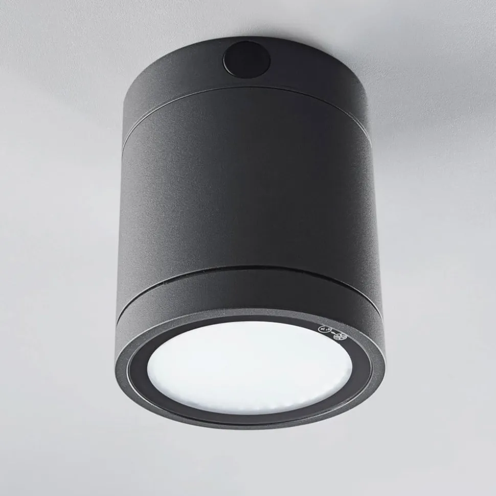 Negro LED udendørs loftslampe er ideel til udendørs brug takket være IP65- kapslingsklasse . Armaturet består af et grafitfarvet aluminiumshus med en mat lys udgangsflade. Dette gør den særligt velegnet til accentbelysning i kombination med andre loftsbelysning.