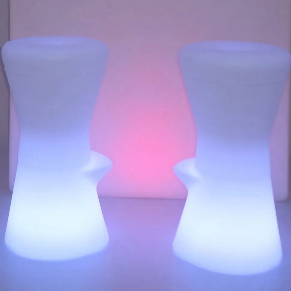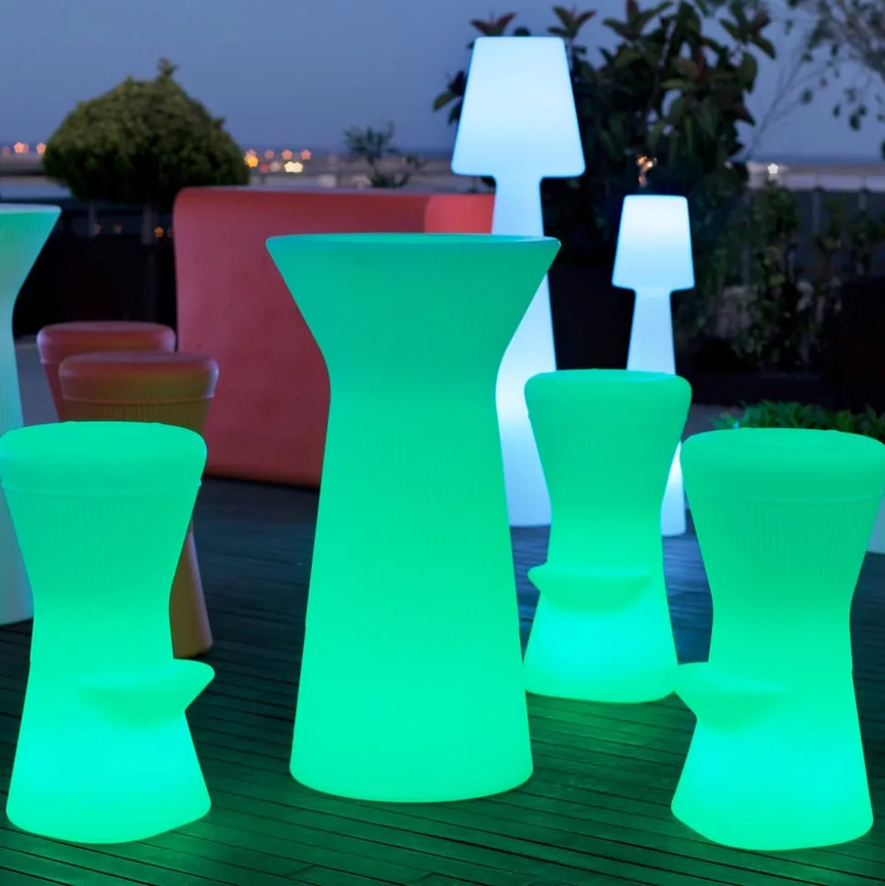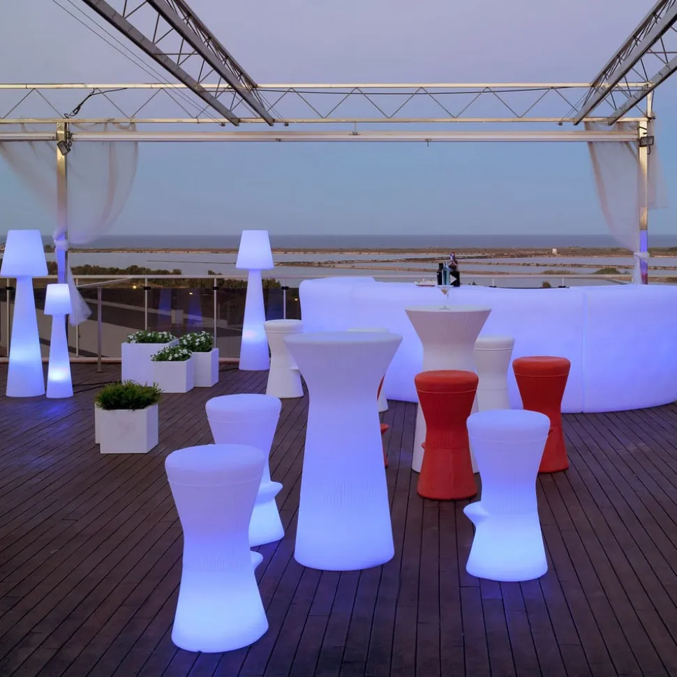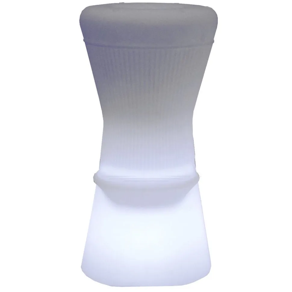 LED-oplyst Corfu barstol med solpanel, genopladeligt batteri og ladekabel Corfu barstol er et lysende designobjekt til haven eller terrassen. Kombineret med et barbord kan den sættes sammen til et smukt ensemble. Som næsten alle produkter fra det spanske belysningsmærke Newgarden er skamlen fremstillet af polyethylen. Denne plast er ikke kun robust, modstandsdygtig over for ekstreme temperaturer og UV-resistent, men også 100% genanvendelig. Barstolen er også støvtæt og beskyttet mod vandstråler med en IP65-beskyttelsesgrad. Der er installeret både RGB-lysdioder og hvide lysdioder i skamlen for at belyse materialet indefra, og lysfarve og lysstyrke kan nemt vælges med den medfølgende infrarøde fjernbetjening. Skamlen er udstyret med et solpanel, så batteriet oplades af sollys i løbet af dagen, men batteriet kan også oplades i stikkontakten ved hjælp af det medfølgende ladekabel – Batteri 1 x 2000 mAh lithium – Lysvarighed op til 36 timer afhængigt af lysindstillingen – Opladningstid 4 til 6 timer – Inkluderer 1,5 m ladekabel og IR-fjernbetjening