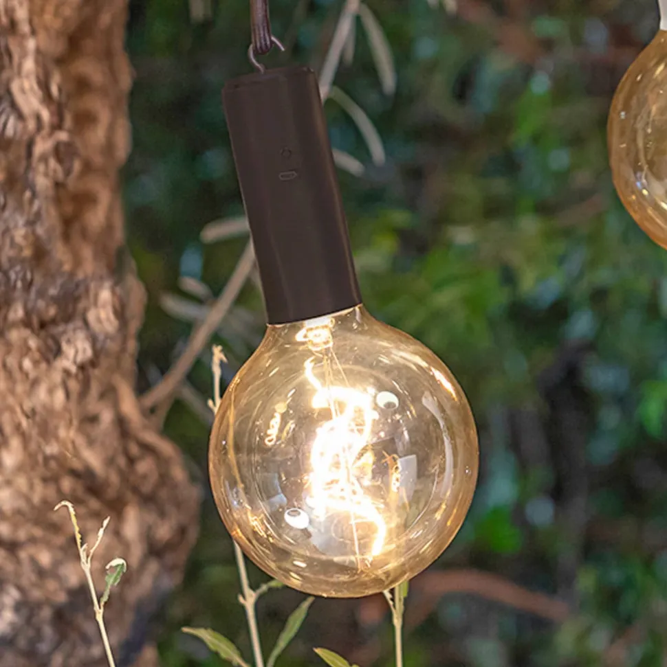 Dæmpbar Edy G125 LED-lampe med filamentoptik Edy LED-lampen forbedrer ethvert miljø med sit dekorative design – den sfæriske skærm og den dobbelte filamentoptik – og kan bruges både indendørs og udendørs takket være IP54-beskyttelsesgraden. Edy kan bruges på mange forskellige måder, da den kan bruges som pendel, bordlampe eller loftslampe. Lyset oplades også med et USB-kabel (medfølger) og kan derfor placeres hvor som helst. Lyset kan dæmpes med den medfølgende fjernbetjening – Lystid op til 25 timer – Opladningstid 4-6 timer