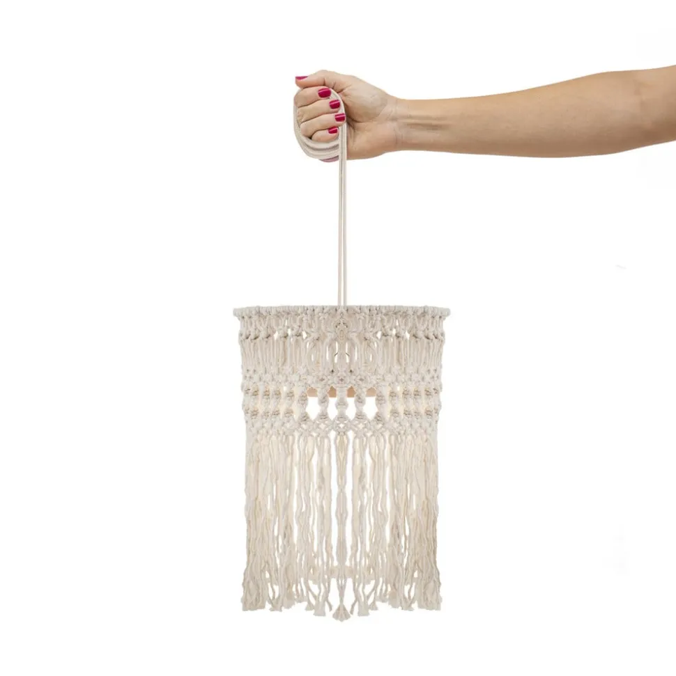 Genopladelig Mykonos LED hængelampe til udendørs brug Mykonos LED hængelampen er perfekt til terrasser, balkoner og haver. Takket være det 3 meter lange kabel kan den nemt hænges op overalt. Inden i den hæklede bomuldsskærm er der et genopladeligt batteri, som kan oplades med et USB-C-kabel (kabel medfølger, netadapter medfølger ikke). Den kan dæmmes ved hjælp af den medfølgende fjernbetjening – IP54 – Opladningstid 4-6 timer – Belysningens varighed: 20 timer