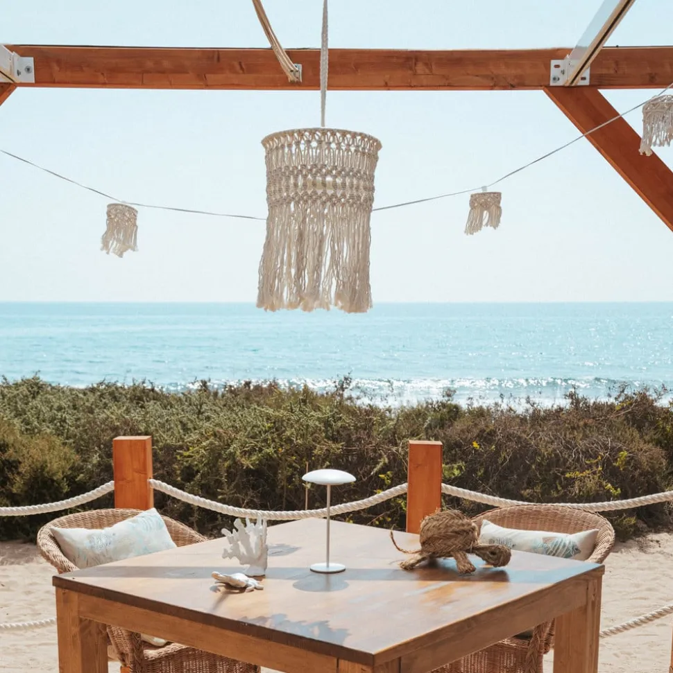 8 lyskilder Mykonos med solpanel og til opladning De dekorative, sommerlige Mykonos lyskæder med skærme af hæklet bomuld kan oplades ved hjælp af solenergi eller via en stikkontakt (USB-C-kabel medfølger, netadapter medfølger ikke). LED-pærerne medfølger, men kan udskiftes.