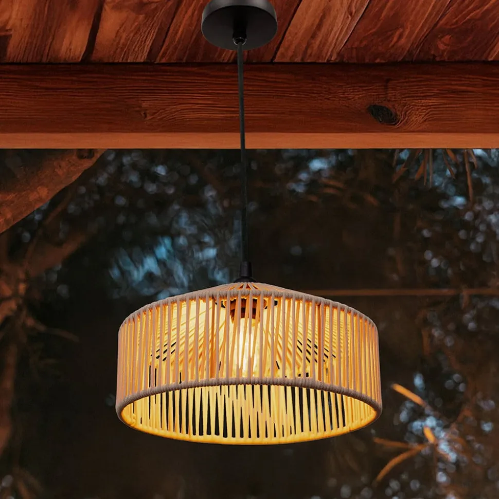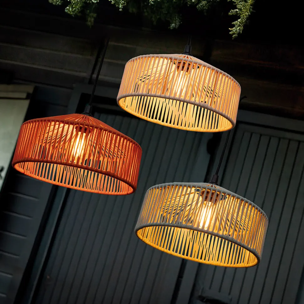Calabardina pendellampen er velegnet til montering via et stik eller direkte ledningsføring. Den har en grovmasket lampeskærm af reb, der kan udstyres med E27-pærer. Den frie udsigt til lyskilden gør det i dette tilfælde anbefalelsesværdigt at vælge en filamentpære, som med sit særlige design understreger lampens udseende. Hvis man desuden vælger en dæmpbar eller smart pære, kan man sikre sig en fleksibel belysning. Kapslingsgrad IP44 beskytter Calabardina mod stænkvand og gør den perfekt til overdækkede altaner og terrasser.