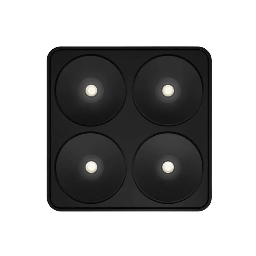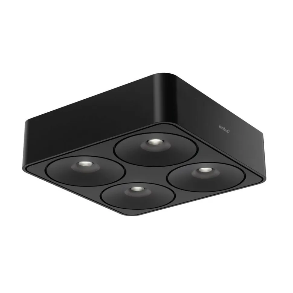 Q Four TT LED-loftslampe med fleksibelt justerbart lysudbytte Q Four TT-loftslampen af høj kvalitet imponerer ikke kun med sit udseende, men gør sig også populær med flere egenskaber. Det kubiske påbygningshus i aluminium kan drejes og svinges. På den måde kan strålerne fra de fire indvendige LED’er justeres og belysningen tilpasses. Formen og placeringen af lysåbningerne (off-lens-teknologi) er designet, så lyset fokuseres og sendes ud i rummet med lav blænding. Dette er særligt velegnet til accentbelysning. Om nødvendigt kan der indsættes en bagkant- eller forkantfasedæmper (medfølger ikke) for at regulere lampens lysstyrke via vægkontakten. Det minimalistiske spotlight integreres smukt i rene interiører og forbedrer rumkonceptet uden at være påtrængende.