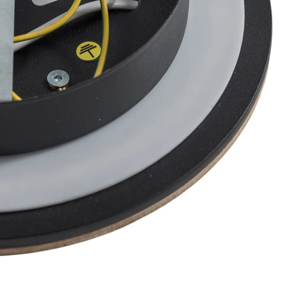 Rund Orios LED-væglampe med træafdækning og indirekte lysudsendelse Orios LED-væglampen er designet i en cirkulær, flad form. Hele fronten optages af et panel af lyst træ. LED-lyskilden er skjult bag det. Dens varmhvide lys udsendes hele vejen rundt til siderne og over væggen, så der ikke er nogen blænding. Produktionen finder sted i Europa.