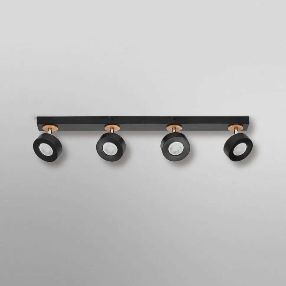 LED-loftspot Pluto giver med sine fire justerbare spots en fleksibel rumbelysning og charmerer desuden med sine trædetaljer. Produktkarakteristika: Lampeserien omfatter varianter med op til 4 spotlampehoveder. Kabinetmateriale: Metal og træ. Justerbare lampehoveder. Produktfordele: Kabinet af høj kvalitet med mat overflade på de metalliske komponenter. Enkel montering. Anvendelsesområder: Indendørs anvendelse. Korridorer, entréer, trappeopgange, stuer, kældre. Køkkener, arbejdsområder. Lofts- og vægmontering. Teknisk udstyr: Komplet monterings- og tilslutningsudstyr medfølger.