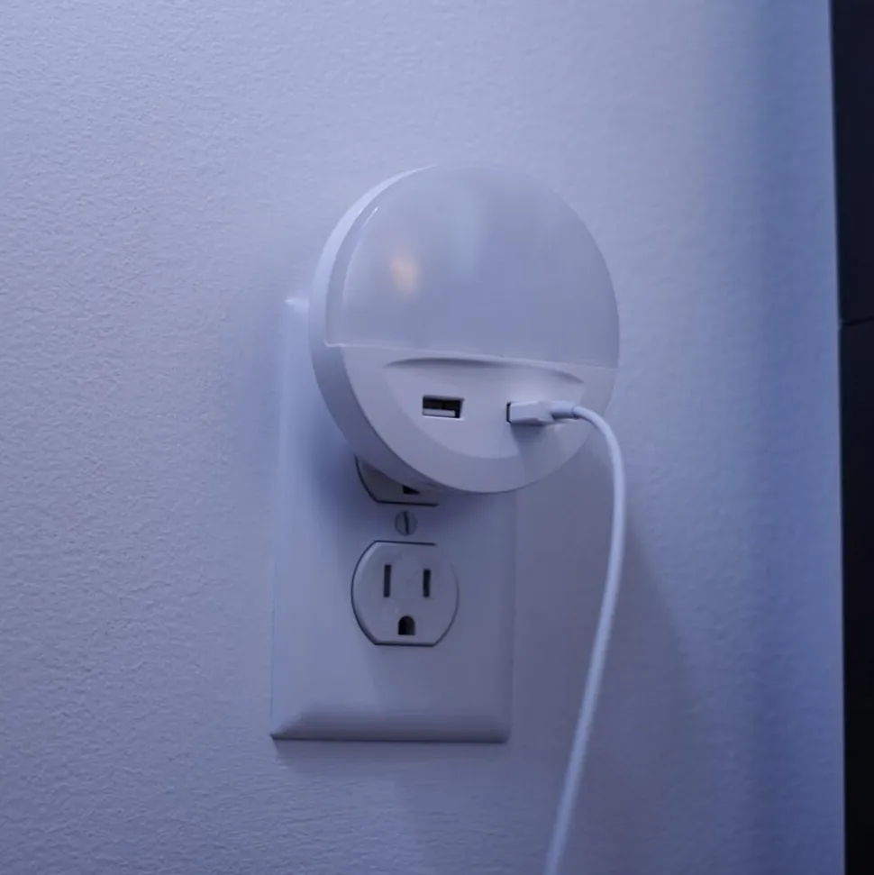 LED-natlampen LUNETTA USB med opladningsport Produktfordele: Tændes og slukkes automatisk ophæng af dagslys. Plug-and-play med EU-stik. Energieffektivt takket være LED-teknologi. Anvendelsesområder: Soveværelse. Børneværelse. Kun til indendørs belysning.