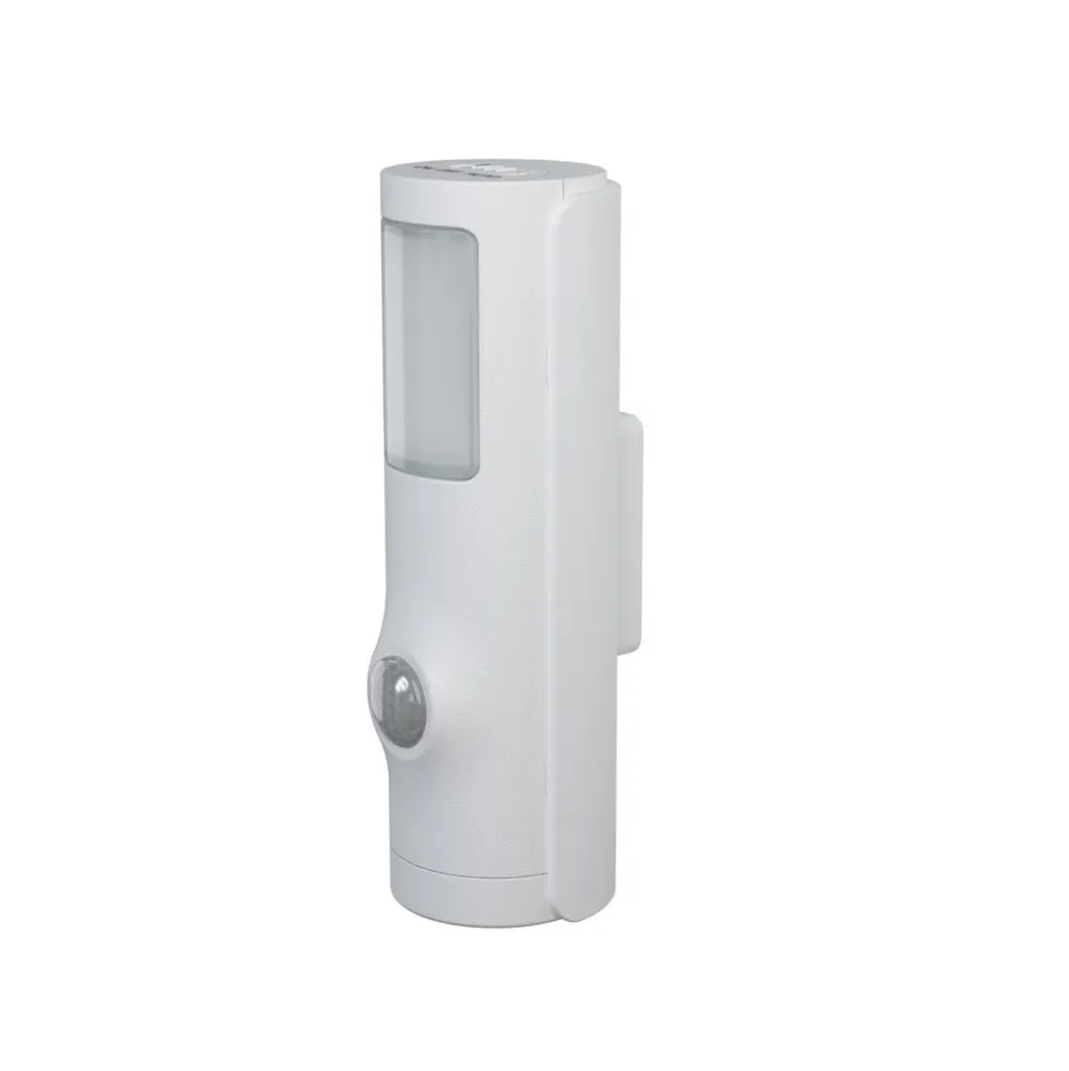 NIGHTLUX TORCH er en LED-natlampe med bevægelsessensor, der også har en batteridrevet lommelygtefunktion. Produktkarakteristika: Integreret lys- og bevægelsessensor. Afbryder til auto- eller tænd/sluk-tilstand. Kapslingsgrad: IP54. Produktfordele: Attraktivt og funktionelt design. Økonomisk drift takket være lavt strømforbrug. Enkel og hurtig montering på næsten alle overflader (klæbestrimler eller skruer). Tilbehør til fleksible monteringsmuligheder medfølger. Kan bruges mobilt ved at tage den ud af holderen. Anvendelsesområder: Indendørs og udendørs. Ideel til brug derhjemme og på farten. Teknisk udstyr: Batterier medfølger: 3×1,5 V LR03 (AAA).
