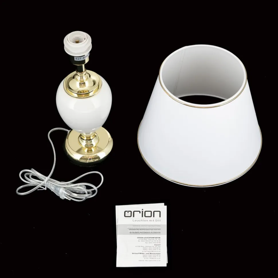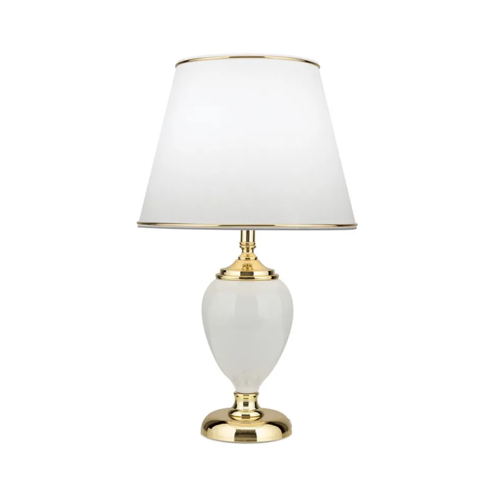 Ovum bordlampe, hvid/guldfarvet, højde 48 cm, keramik/chintz