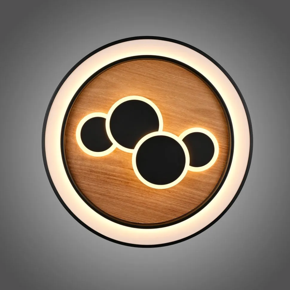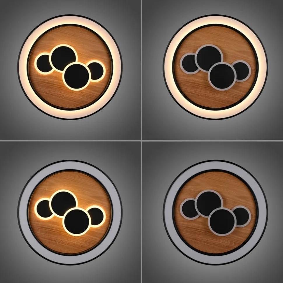 Kraftfuld Eliza LED-loftlampe – rund Eliza LED-loftlampen er en perfekt kombination af moderne teknologi og naturligt design. Med sit runde og tidløse look passer den perfekt ind i ethvert hjem. Den høje lysstrøm sikrer fremragende belysning i alle rum. Det olierede egetræ giver lyset en naturlig flair og giver rummet et varmt og hyggeligt udseende. Uanset om det er i stuen, soveværelset eller gangen – LED-loftlampen Eliza er et ægte blikfang og et must-have for alle, der leder efter en stilfuld og funktionel belysningsløsning – Seriebryder via vægkontakten: 1 x kontakt: alle tændt, 2 x kontakt: inde, 3 x kontakt: ude