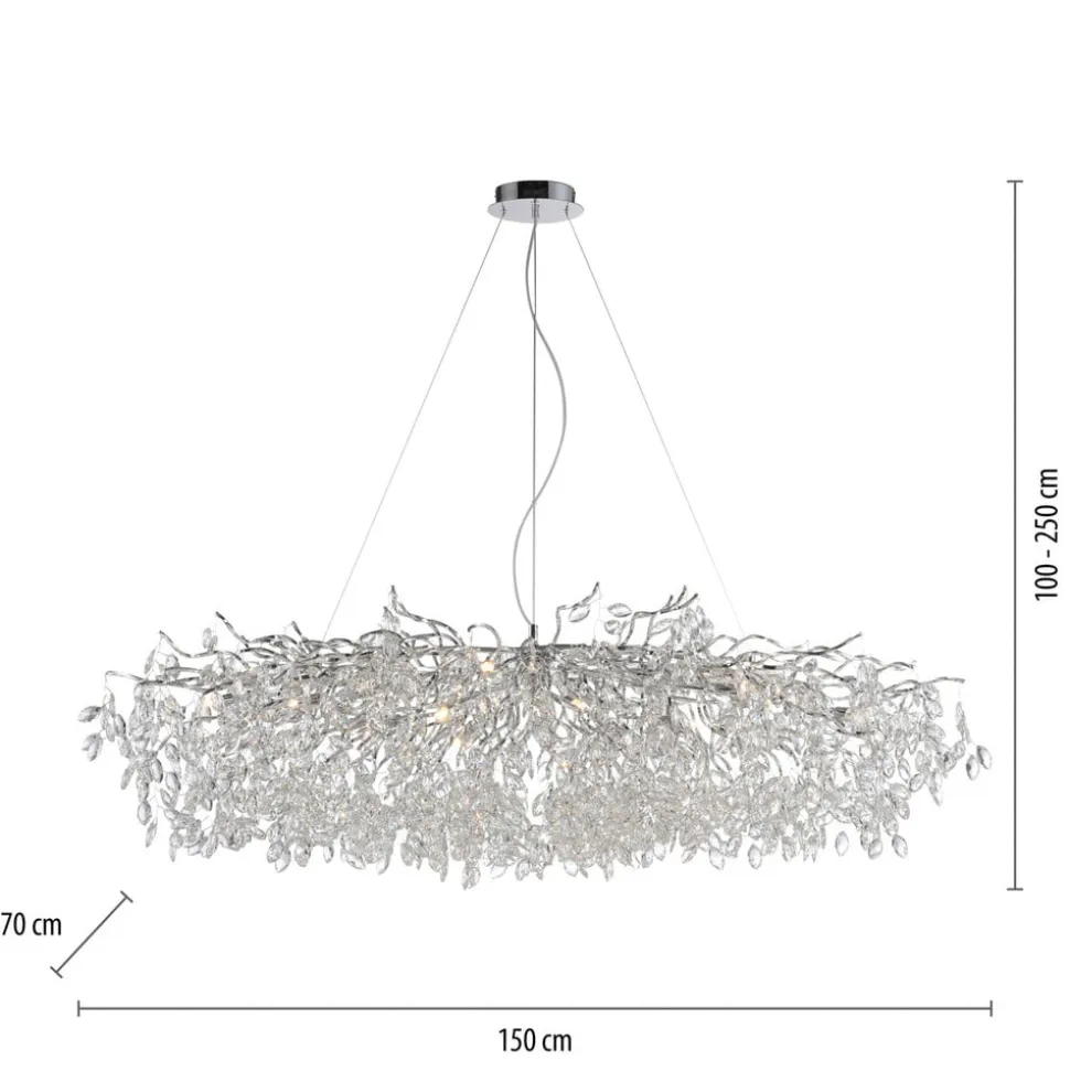 Paul Neuhaus lysekrone Ricicle, krom, længde 150 cm