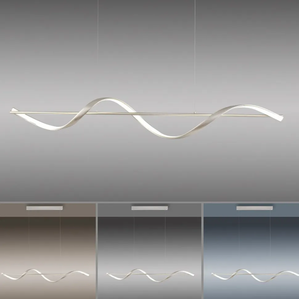 Q-Swing LED-pendel med fjernbetjening og ZigBee-funktion – buet designDen enkeltflammede Q-Swing LED-pendel giver det tidløse design af en bjælkependel en moderne opdatering. En smal metalstang hænger fra to kabler under den rektangulære baldakin. Lyselementet, som kendetegner armaturseriens design, snor sig rundt om den. På den ene side af det buede element, bag et satincover, sidder LED’erne, som generøst oplyser omgivelserne på alle sider. En passende Q-fjernbetjening er allerede inkluderet i leveringsomfanget til tænding, dæmpning og regulering af farvetemperaturen. Ud over fri justering af lyset tilbyder den også forudkonfigurerede muligheder, så den perfekte belysning er praktisk tilgængelig i næsten enhver situation. Alternativt kan Q-Swing integreres i ZigBee-baserede smart home-systemer via radio (bro påkrævet) for at styre den via app eller stemmekommando, afhængigt af konfigurationen.Tekniske data/kompatibilitet:- dæmpbar- lysets farvetemperatur kan justeres fra varm hvid til universal hvid- forudkonfigurerede scener- hukommelsesfunktion- skift af op til 20 individuelle Q-lights eller Q-lights til maks. 3 grupper med kun én Q-fjernbetjening (vedlagt)- ZigBee-kompatibel- stemmestyring via enheder med integreret ZigBee-hub (f.eks. Echo 4. gen, Echo Studio, Echo Show 10 3rd gen) direkte mulig- Når den er integreret i et ZigBee-baseret smart home-system, kan den også nemt styres via app eller stemmekommandoBemærk: Der kræves en bro til tilslutning til et smart home-system eller app-styring; dette er ikke en del af leveringsomfanget