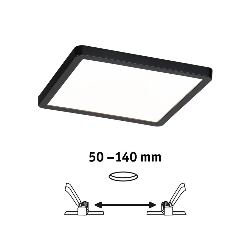 Smart Home LED-indbygningspanel Areo med VariFit-spændefjedre og skiftende lysfarve, ZigBee 3.0 Det sorte hus på Areo LED-indbygningspanel kombineret med det hvide dæksel på det integrerede LED-modul skaber et kontrastfyldt look. Takket være VariFit-monteringssystemet med trinløst justerbare spændefjedre er det ligeledes alsidigt med hensyn til installation. Areo kan som standard tændes og slukkes ved hjælp af almindelige vægkontakter, men der er betydeligt mere funktionalitet til rådighed, når den er blevet integreret i et ZigBee-baseret smart home-system. Så er det muligt at dæmpe lysstyrken, justere lysfarven jævnt fra varmhvid til dagslys-hvid og styre alt bekvemt fra sofaen eller endda på farten. Ud over smik-gatewayen fra Paulmann selv (gratis smik-app tilgængelig til iOS og Android) kan en ZigBee-bro fra en anden producent også bruges som bro. På den måde kan Areo integreres i eksisterende smart home-systemer, som understøtter ZigBee-standarden, f.eks. Philips Hue eller IKEA Tradfri. Hvis du vil klare dig uden en bro, kan du bruge en håndholdt sender som f.eks. fjernbetjeningen fra Paulmann. De førnævnte smart home-elementer fås separat via tilbehøret. Installationsdybde / anbefalet hulrumsdybde: – afhængigt af installationsdiameteren – ved en diameter på 8,5 cm anbefales en hulrumsdybde på mindst 3 cm – ved en diameter på 6,8 cm anbefales en hulrumsdybde på mindst 5,5 cm Tekniske funktioner / kompatibilitet: – baseret på ZigBee 3.0 radioprotokol – VariFit klemmefjedre: variabel installationsdiameter – Kompatibel med Basis smart home-systemer som Philips Hue eller IKEA Tradfri – Kompatibel med Paulmann fjernbetjening og vægkontakt til smart home (se tilbehør) – Dæmpbar – Lysfarve kan justeres fra varmhvid til dagslys hvid (efter integration i et smart home-system) Bemærkninger: Velegnet til lofter og vægge med en tykkelse på 10 mm til 20 mm.