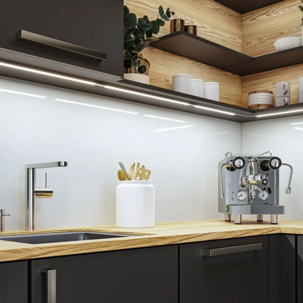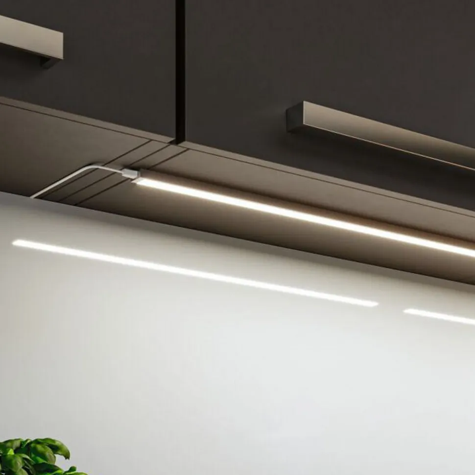 Moderne køkkenbelysning – LED underskabslampe Inline, forlængersæt med to lamper med CCT-funktion LED underskabslampen Inline er designet til funktionel belysning af køkkenbordplader. Den består af en slank aluminiumsprofil og skærm med rengøringsvenlige overflader og indeholder LED’er med justerbar lysfarve – udvidelsessæt med to lamper, tilslutningskabel, monteringsmateriale – designet til at supplere et startsæt (op til en maksimal samlet effekt på 24 W) – uden strømforsyningsenhed, uden afbryder – drift kun mulig i kombination med et Inline-startsæt!