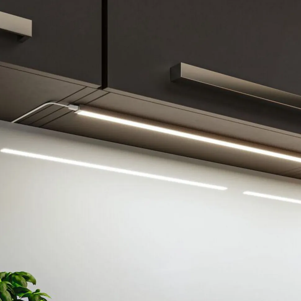Moderne køkkenbelysning – LED underskabslampe Inline, forlængersæt med to lamper med CCT-funktion LED underskabslampen Inline er designet til funktionel belysning af køkkenbordplader. Den består af en slank aluminiumsprofil og skærm med rengøringsvenlige overflader og indeholder LED’er med justerbar lysfarve – udvidelsessæt med to lamper, tilslutningskabel, monteringsmateriale – designet til at supplere et startsæt (op til en maksimal samlet effekt på 24 W) – uden strømforsyningsenhed, uden afbryder – drift kun mulig i kombination med et Inline-startsæt!