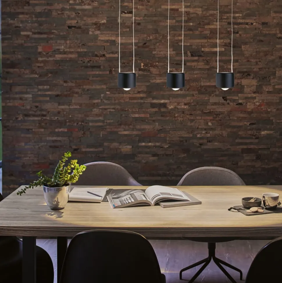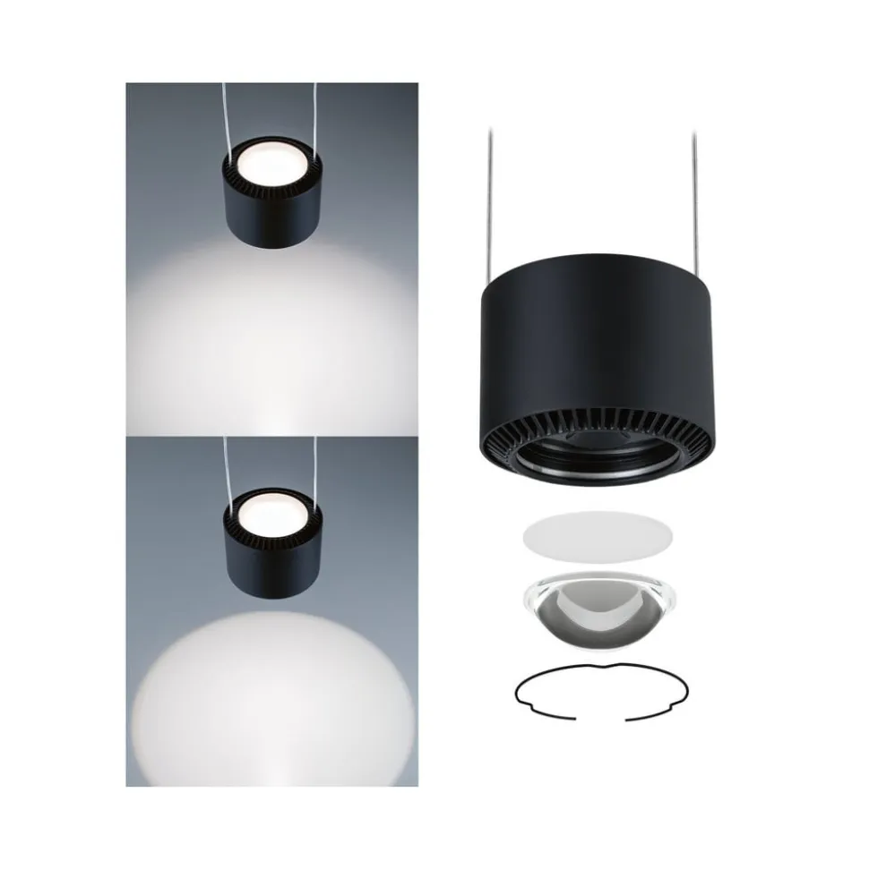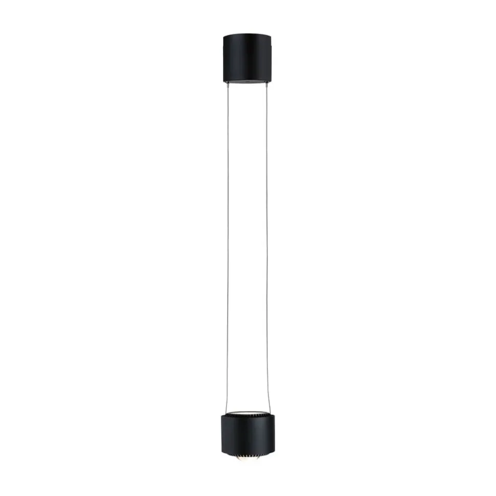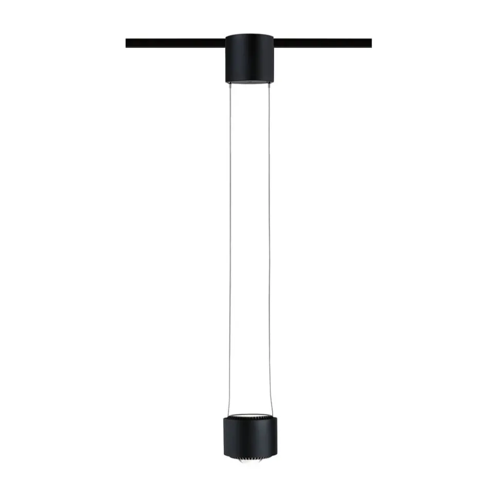 LED-pendlen til brug i en URail skinne er fremstillet af metal og plast og oplyser borde eller diske både direkte og indirekte, fordi der også er installeret LED’er i pendlen, der peger opad. Det cylindrisk formede pendelarmatur er udstyret med universelle hvide LED’er og er derfor ideelt til brug i køkkener og arbejdsområder.