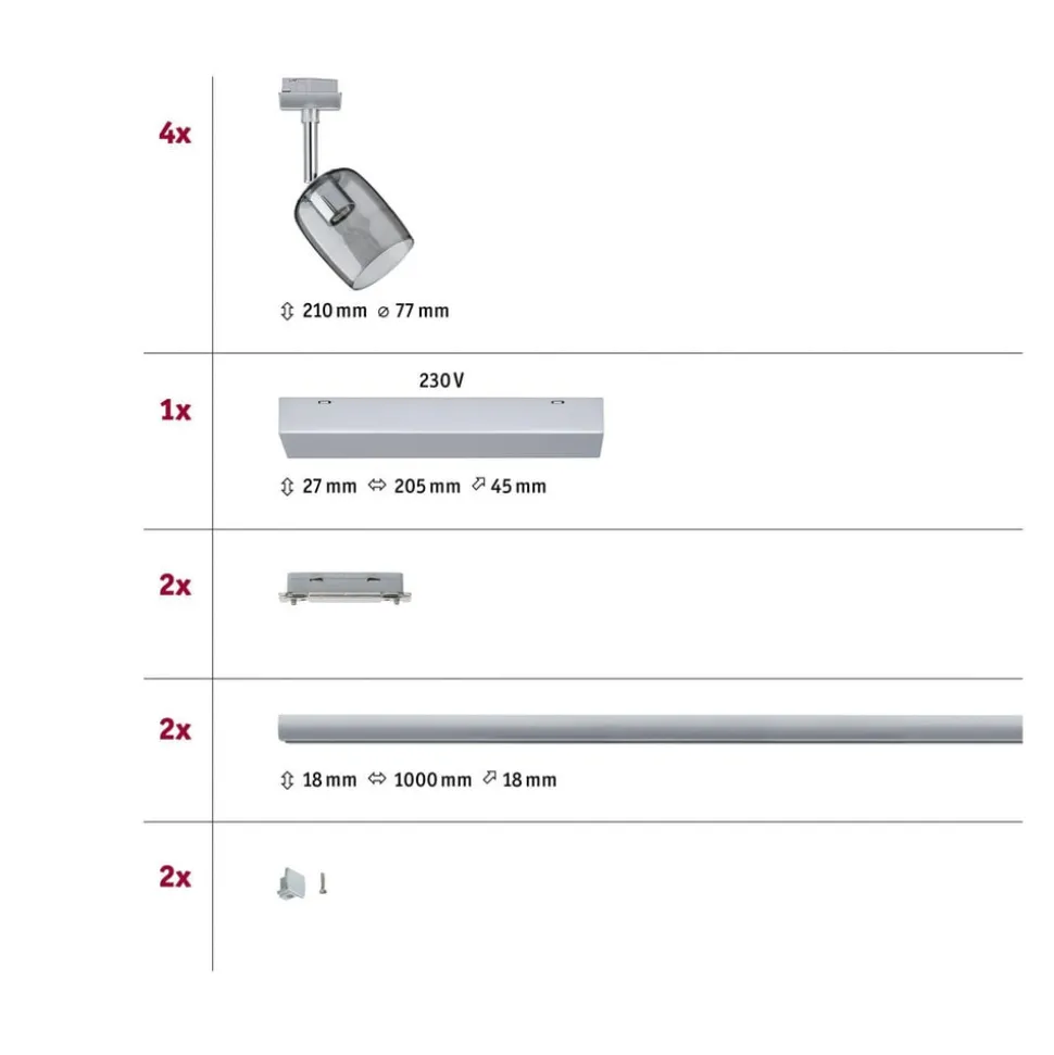 - inkl. fire spots, 2 x 1 m skinne, konnektor, forsyning
