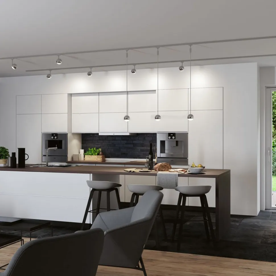 Capsule II er et LED pendelarmatur til URail skinnesystemet. Universelle hvide LED’er, der udsender blændfrit lys, er installeret i den kugleformede skærm med en satineret nederste del. Den universelle hvide lysfarve gør pendlen ideel til køkkenet eller til arbejdsområder, f.eks. over en bordplade eller et bord i køkkenet. LED’erne i Capsule II pendellampen kan dæmpes. Dette kræver en ekstern lysdæmper i ruminstallationen (R, L, C).