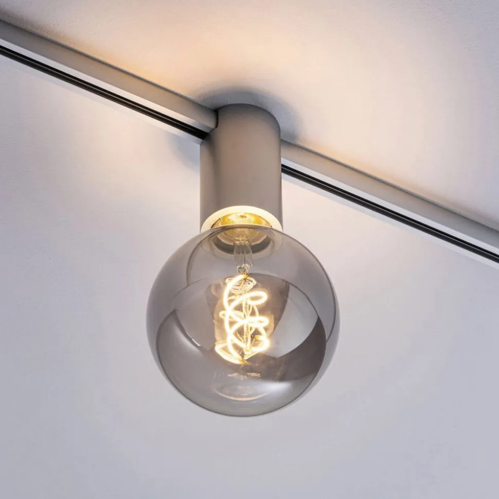 URail Spot Ceiling Socket – E27-fatning til URail-skinnesystemet Denne E27-fatning til URail-skinnen er beregnet til kombination med dekorative lyskilder, f.eks. spejle eller glødelamper i mange forskellige størrelser og former. Den indvendige E27-fatning og skinneholderen er skjult bag metaldækslet.
