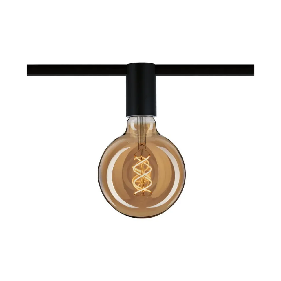 URail Spot Ceiling Socket – E27-fatning til URail-skinnesystemet Denne E27-fatning til URail-skinnen er beregnet til kombination med dekorative lyskilder, f.eks. spejle eller glødelamper i mange forskellige størrelser og former. Den indvendige E27-fatning og skinneholderen er skjult bag metaldækslet.