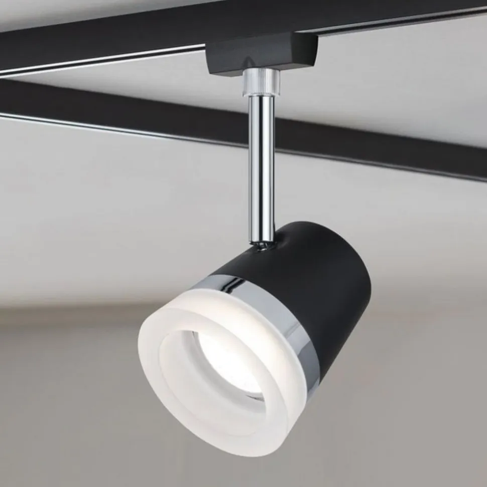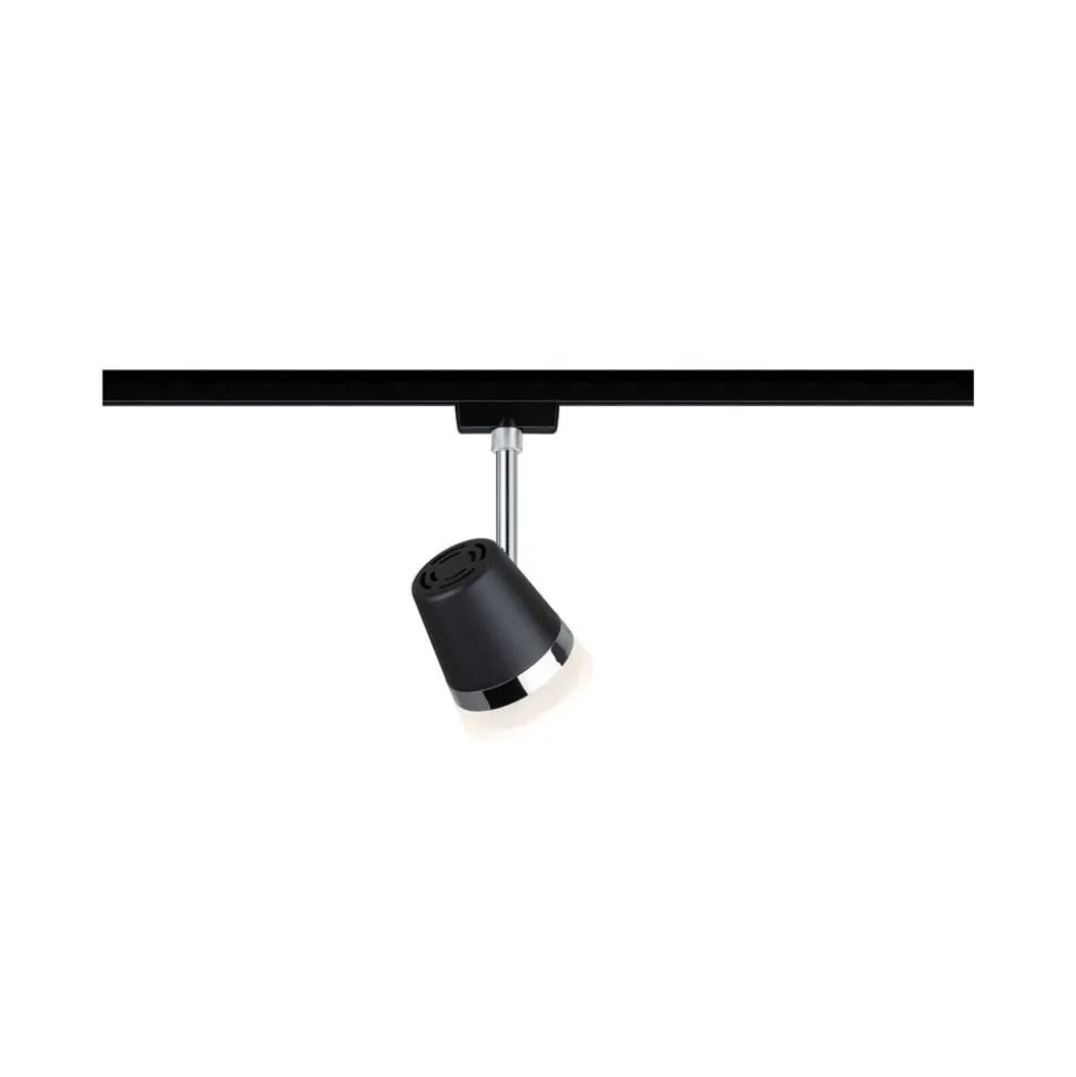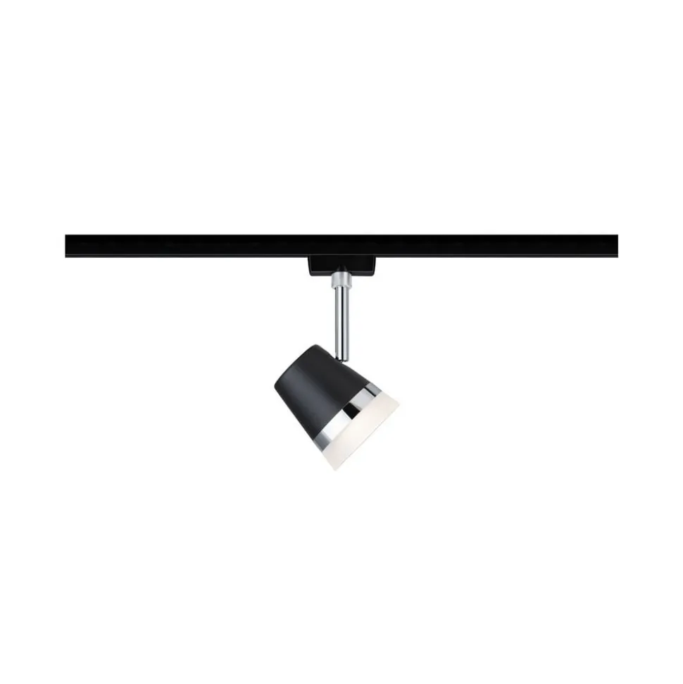 URail spot Cone er et klassisk formet spot, der kan justeres efter URail . På grund af de anvendte materialer og farver ser det meget høj kvalitet og elegant ud. Halvdelen af lampehoved er dækket af en mat sort tone efterfulgt af en kromfarvet ring, der er en slående detalje. I slutningen er der en kant lavet af glas, som også er mat og derfor giver en blændfri lysemission til siderne. Dybest set udsendes lyset på en retningsbestemt måde, så det kan belyses selektivt. Især i kombination med andre steder og komponenter i URail skinnesystemerne skabes et fortryllende lyskoncept, der kan implementeres i næsten ethvert rum.