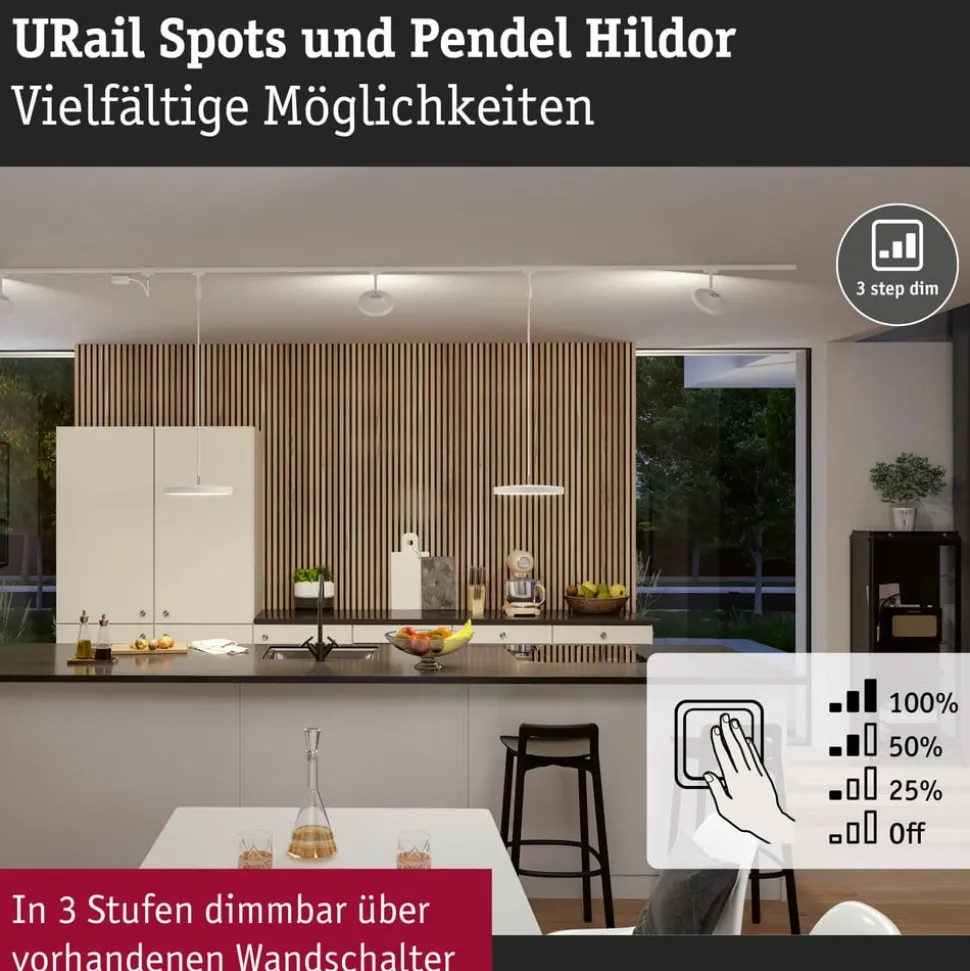 - kan dæmpes i tre trin med en almindelig vægkontakt