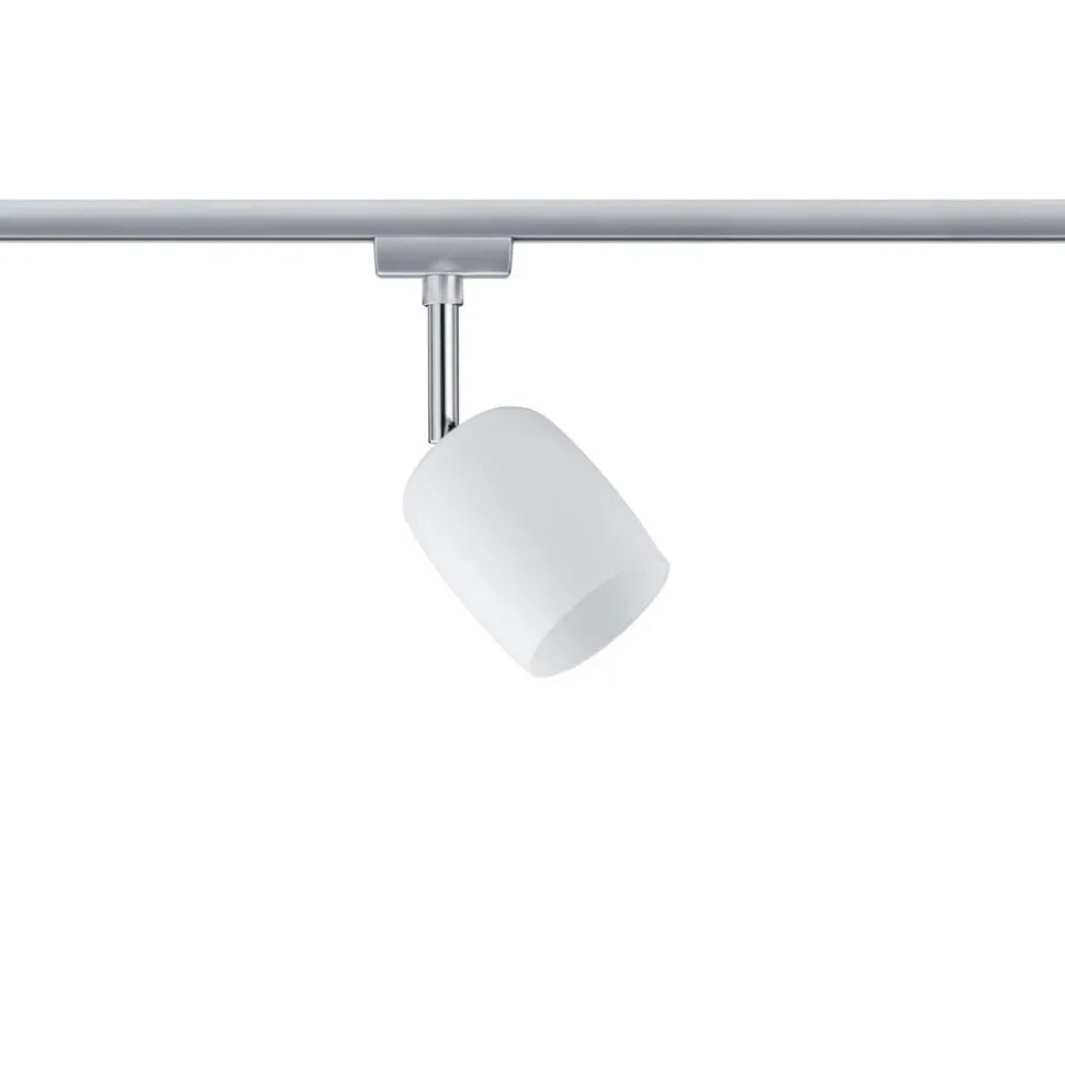 spot Blossom kan integreres i et URail skinnesystem og er ekstremt funktionelt takket være den bevægelige skærm. Skyggen af satineret glas er enkel og giver også spot et strejf af elegance. Derudover sikrer det matte glas, at lyset fordeles blødt og blændfrit i miljøet. En idriftsættelse af en lampe med G9-stik, der kan købes som tilbehør.