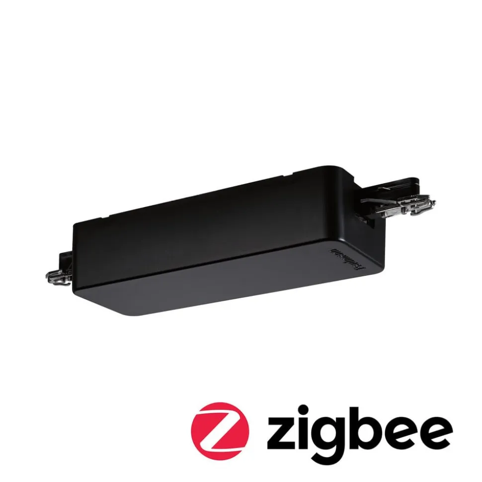 Med denne URail Dimm/Switch-adapter kan efterfølgende skinneafsnit i URail systemet skiftes og dæmpes. Adapteren gør det nemt at integrere URail systemet i et smart styresystem uden at skulle foretage ændringer i husets elinstallationer, fordi den er ZigBee 3.0 kompatibel. Det betyder, at det er muligt at integrere alle smart home-systemer, der er baseret på denne radiostandard.