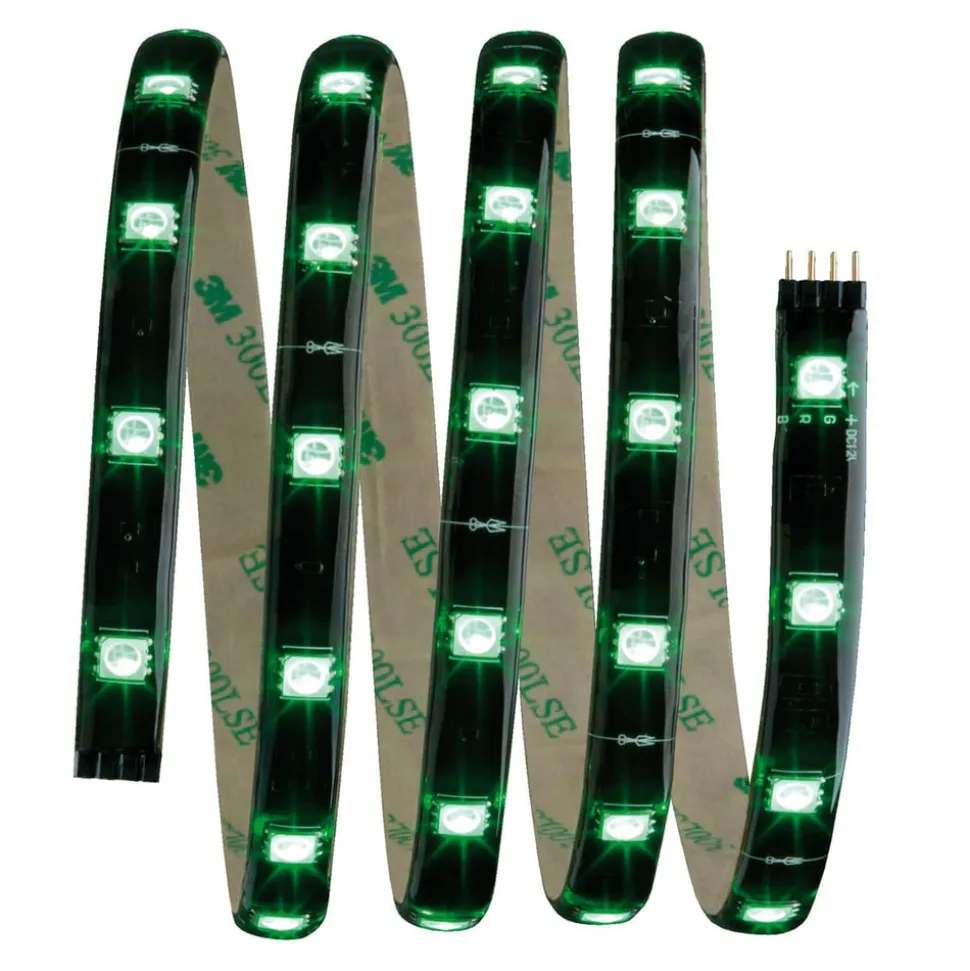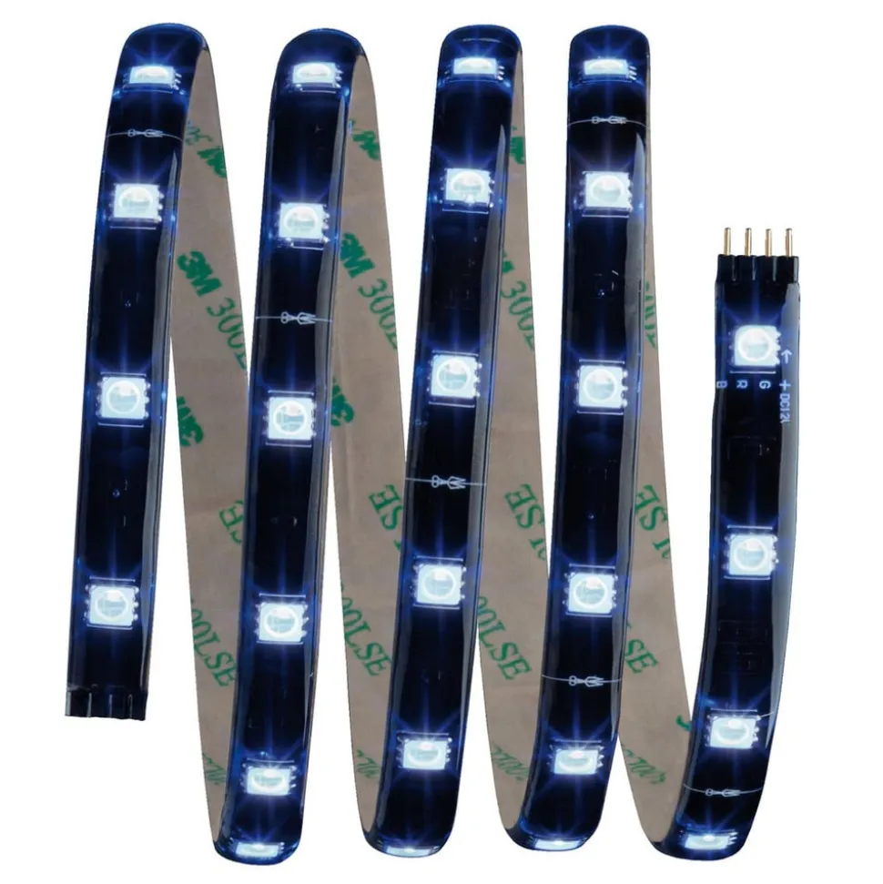 Strimlerne kan fastgøres meget let takket være klæbende bagside og plug-in system. De kan afkortes og forlænges til en samlet længde på 2,5 m. LED-strimlen er lavet af sort plastik og har en gennemsigtig belægning, der beskytter lysdioderne mod kontakt og fugt. Det fleksible materiale er velegnet til installation på flade eller buede overflader.