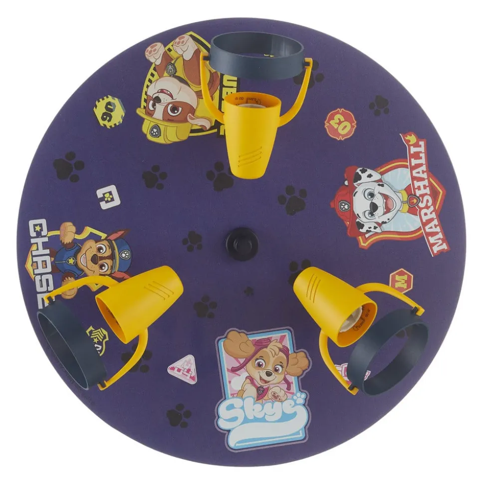 Den runde loftsplade på denne lampe er trykt med fire tegn fra den populære canadiske animationsserie “Paw Patrol”. De tre spotlights lavet af gul plast kan justeres forskelligt og er udstyret med GU10 lamper. Lampen er ideel til belysning af et børneværelse.