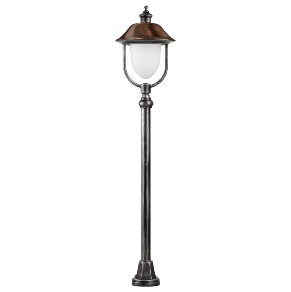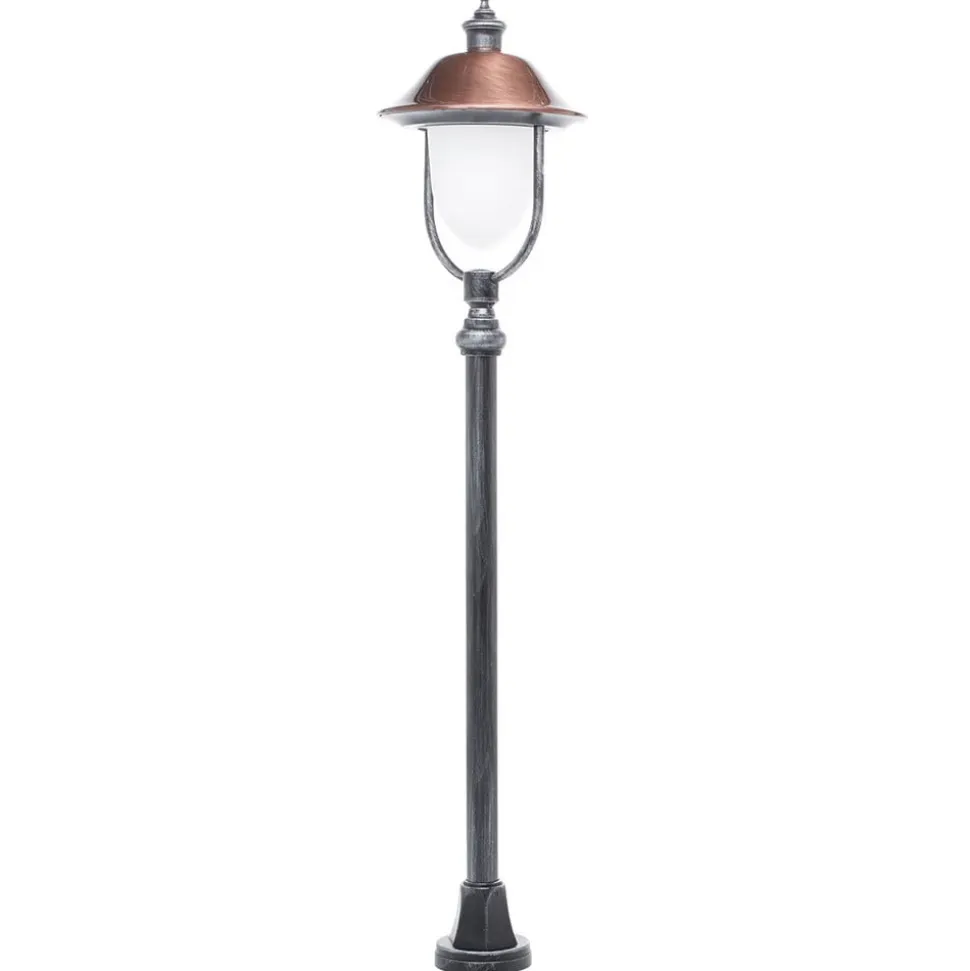 Den charmerende formede stibelysning Peggy med en dekorativ hætte af kobber og et hvidt lampeglas, som hænger frit i rammen under denne hætte, er en effektiv og energibesparende lyskilde til mange udendørsarealer. Den kan anvendes med konventionelle eller energibesparende lyskilder eller også med LED-lamper med E27-sokkel. Stibelyset er fremstillet af aluminium af høj kvalitet og er holdbart, robust og tidløst.